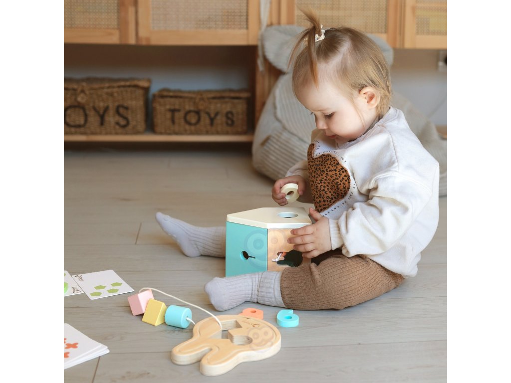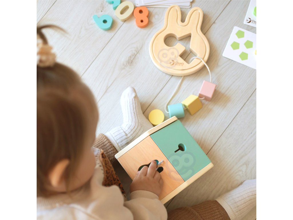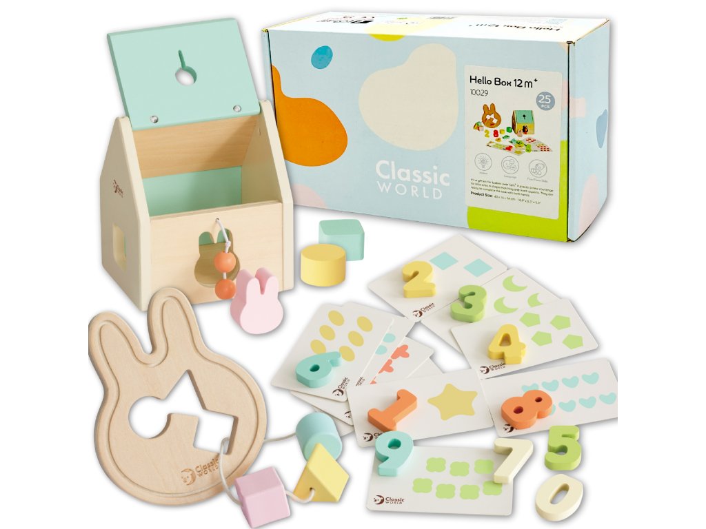 Vítaný vzdelávací BOX od značkyKLASICKÝ SVET je rozkošná darčeková súprava pre deti vo veku 12 až 18 mesiacov, ktorá využíva ich nespútanú zvedavosť o svet. Súprava obsahuje triedičku, počítacie puzzle so vzormi, bloky a navliekaciu hračku v tvare zajačika. Deti môžu rozvíjaťvizuálny prieskum izručnosti motorické zručnosti. Súpravabuduje ismeruje na ich schopnosti udržateľným spôsobom.