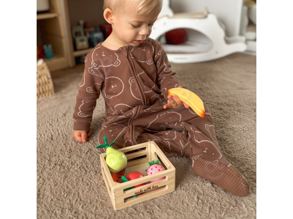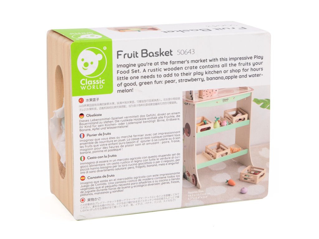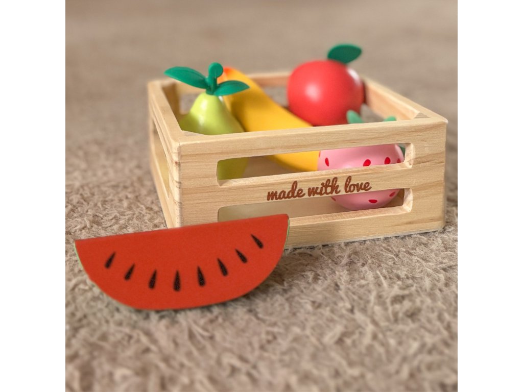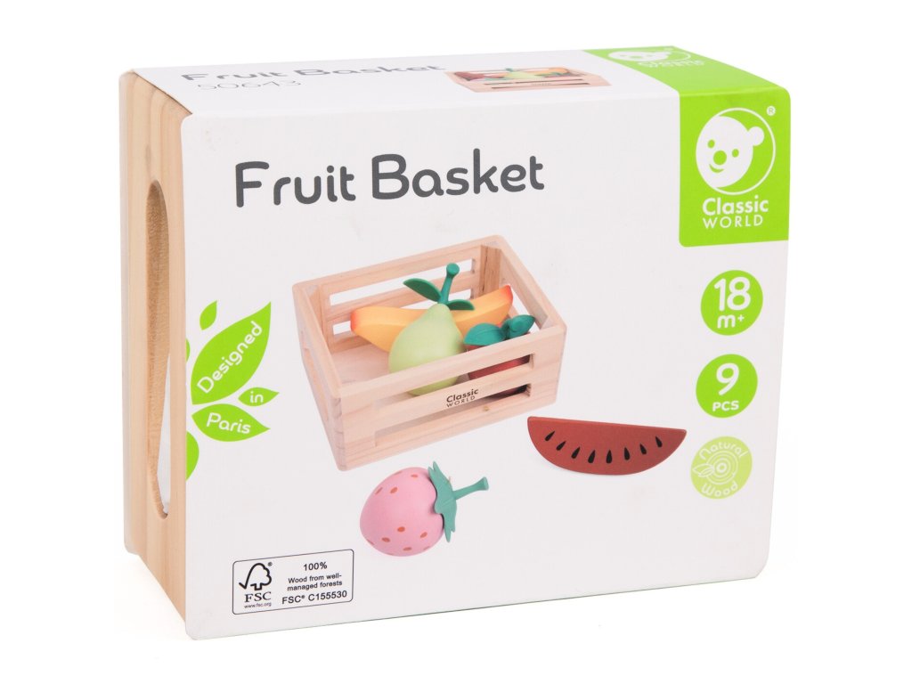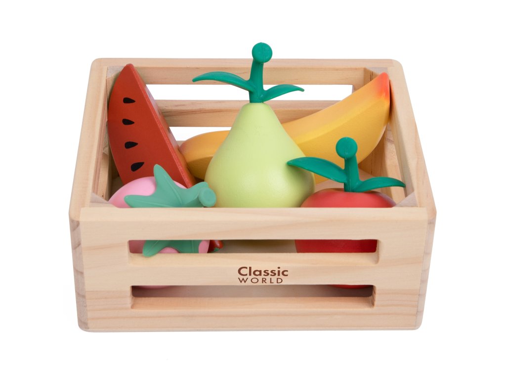 Kôš s ovocím z adresyKlasický svet je sada pre deti, ktoré sa rady kreatívne hrajú v kuchyni alebo obchode. Drevené dieliky reprodukujúce rôzne druhy ovocia umožňujú voľné hranie rolí, rozvíjajú predstavivosť a sociálne zručnosti. Každý komponent súpravy bol vyrobený z kvalitného dreva. Súprava je skvelá na samostatnú hru aj na spoločné tvorenie s rovesníkmi alebo dospelými.