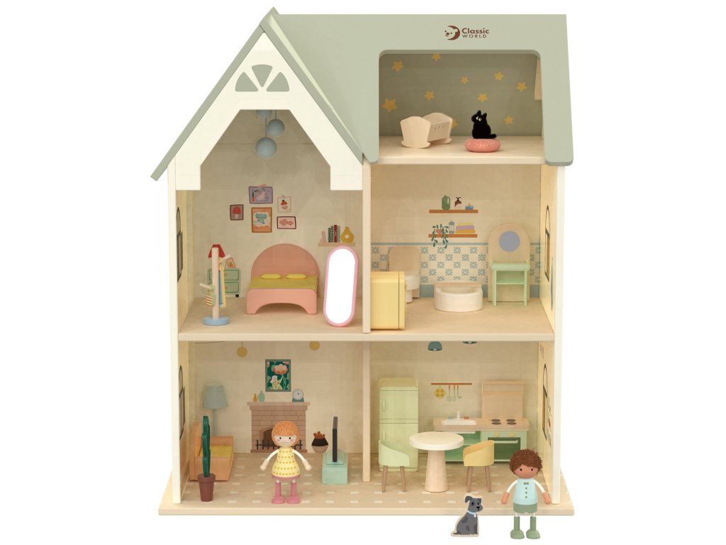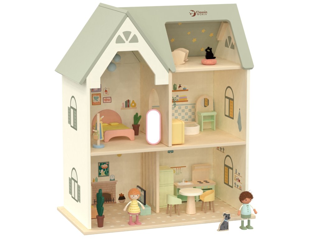 CLASSIC WORLD Veľký drevený domček pre bábiky s nábytkom