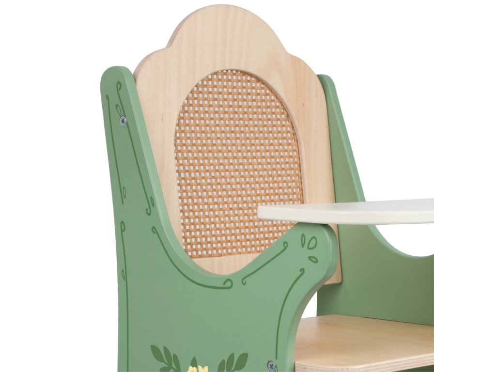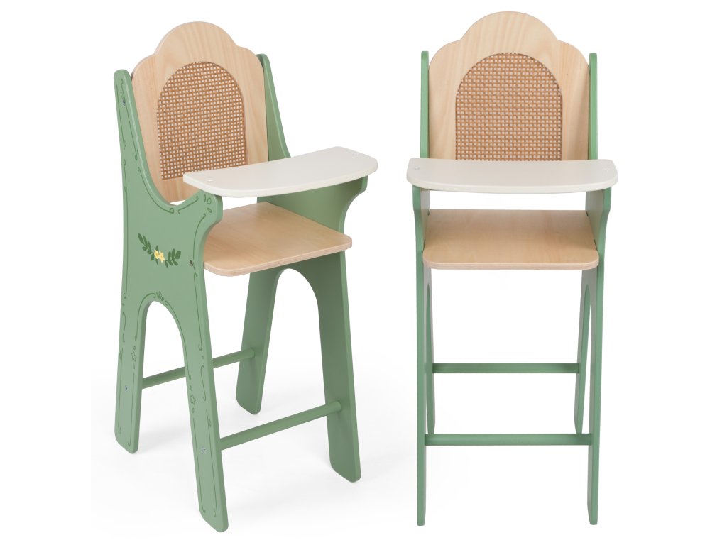 Štýlová drevená stolička na kŕmenie bábik značkyKlasický svet v nádherných farbách s kvetinovým motívom - krásny doplnok k detskému domčeku astarostlivosť o bábiky. Stolička priťahuje pozornosťretro detaily, vďaka čomu je hra ešte realistickejšia a kreatívnejšia.
