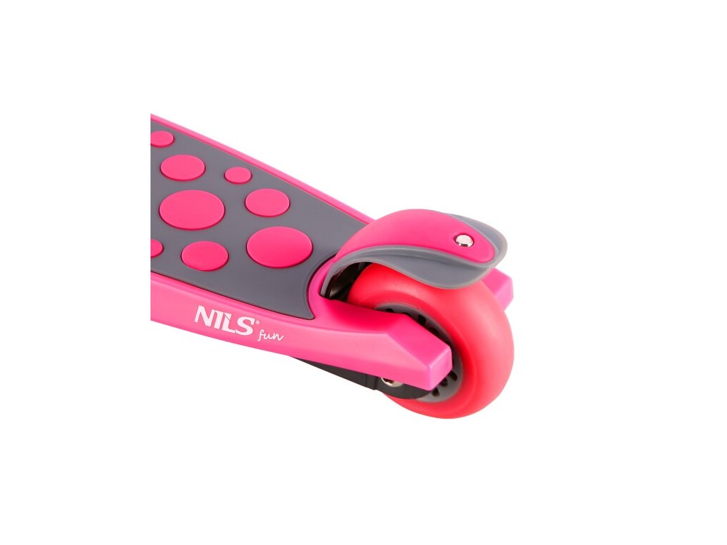 Kolobežka NILS Fun HLB02 má kolieska vybavené LED svetlami, ktoré slúžia ako zaujímavý, vizuálny prvok, zvyšujú záujem detí a v neposlednom rade zvyšujú viditeľnosť kolobežky napríklad za súmraku. Kolieska sa počas otáčania automaticky rozsvietia.