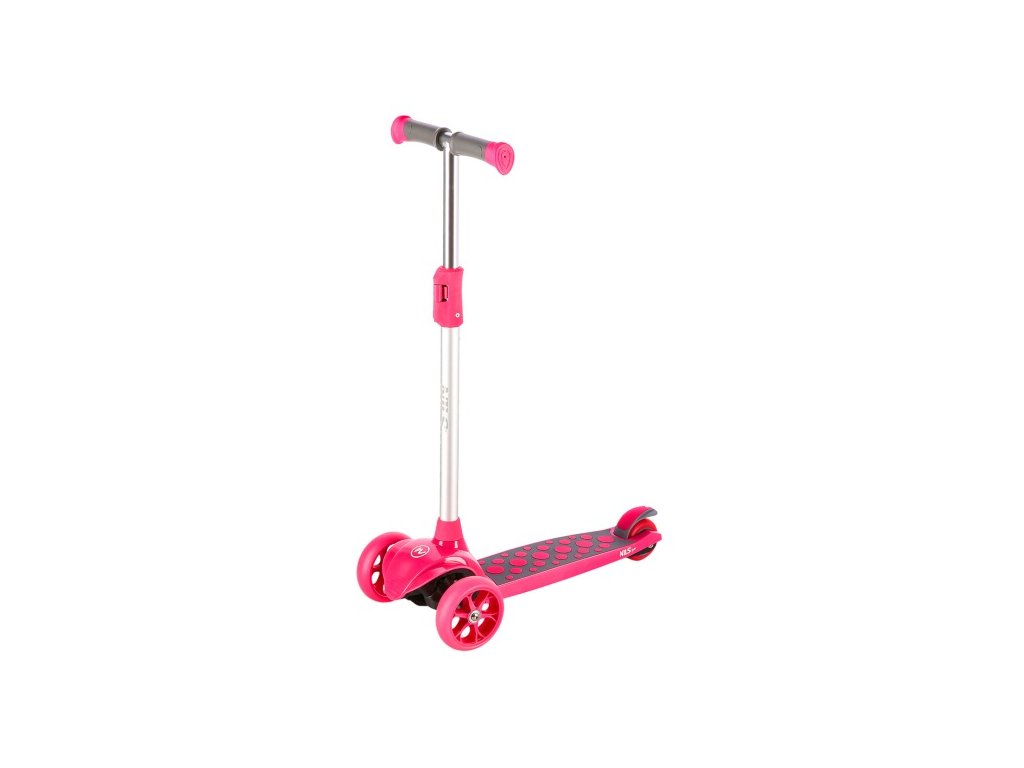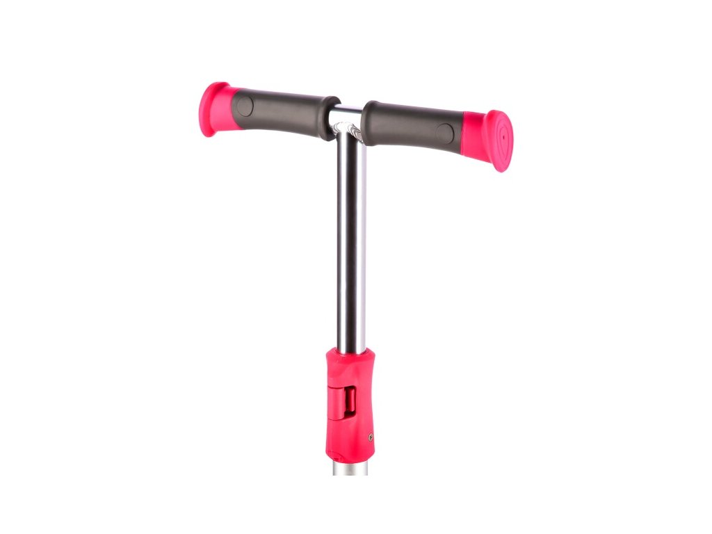 Tri kolieska zaručujú vysokú stabilitu. Teleskopické riadidlá sú stabilné a slúžia predovšetkým na udržanie rovnováhy. Manévrovanie sa vykonáva prenášaním hmotnosti na jednu alebo druhú stranu. Vďaka riadeniu s prenášaním hmotnosti je kolobežka maximálne bezpečná a nedochádza k jej prevráteniu. Rukoväte na riadidlách sú vyrobené z gumy na bezpečné uchopenie. Konce rukovätí sú vybavené zarážkou, ktorá zabraňuje skĺznutiu dlane z rukoväte a zároveň chráni dlaň, ak dieťa náhodou narazí riadidlami do prekážky - napríklad do fasády domu. Stupienok nie je pokrytý klasickým gripom, ale gumovou podložkou. Kolieska sú vybavené ložiskami ABEC 7 pre hladkú jazdu. Zadný blatník slúži ako nášľapná brzda na bezpečné zastavenie kolobežky.