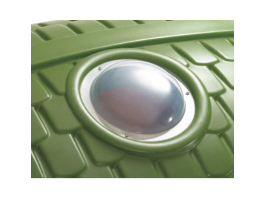 - - Strážna veža má okno - strešné okno a druhý šmykľavka s dĺžkou 98 cm a úkryt s preliezacím tunelom v spodnej časti šmykľavky.