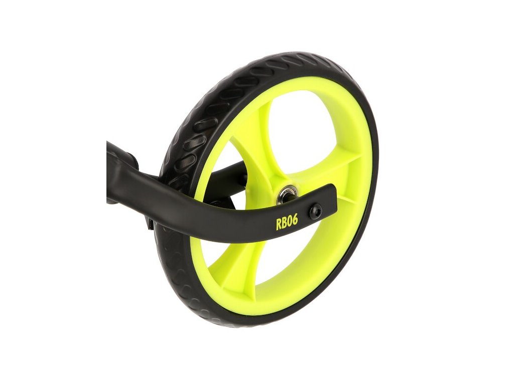 Konštrukcia RB06 je vyrobená o kvalitné, lakované ocele. Pre maximálne bezpečie sú všetky hrany zaoblené. Rukoväte sú osadené gripy s golierom na oboch stranách, ktorý zamedzuje sklznutie dlane. Stredové zloženie je vypaveno zarážkou, ktorá zamedzuje pretočeniu riadidiel. Plastové kolesá sú osadené 9 ", plnú pneumatikou, ktorá nejde preraziť. Ložiská ABEC 9 zaručujú plynulú jazdu. Riadidlá a sedlo sú výškovo nastaviteľné.