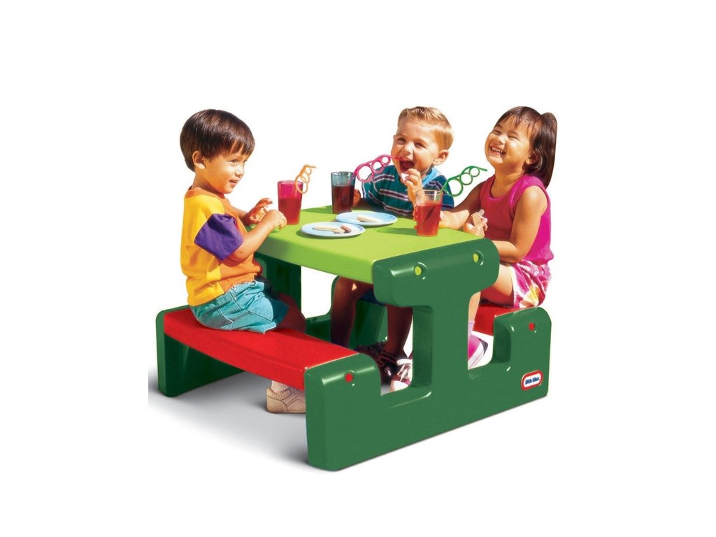 Piknikový stôl pre deti v zelenej a červenej farbe od renomovanej značkyLittle Tikes, uznávaný výrobca hračiek pre deti. Stôl bude ideálny na hranie doma aj na záhrade. Jednodielny stôl je vybavený pohodlnými červenými sedadlami a zaoblenými a hladkými hranami pre bezpečnosť. Stôl sa môže stať detským pracovným stolom, vhodným na všetky druhy úloh, ako je lepenie, maľovanie, vystrihovanie, jedenie atď. Pri stole môžu sedieť štyri deti súčasne.