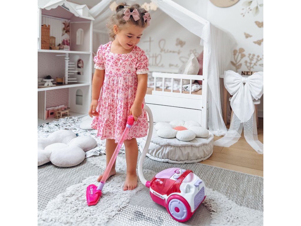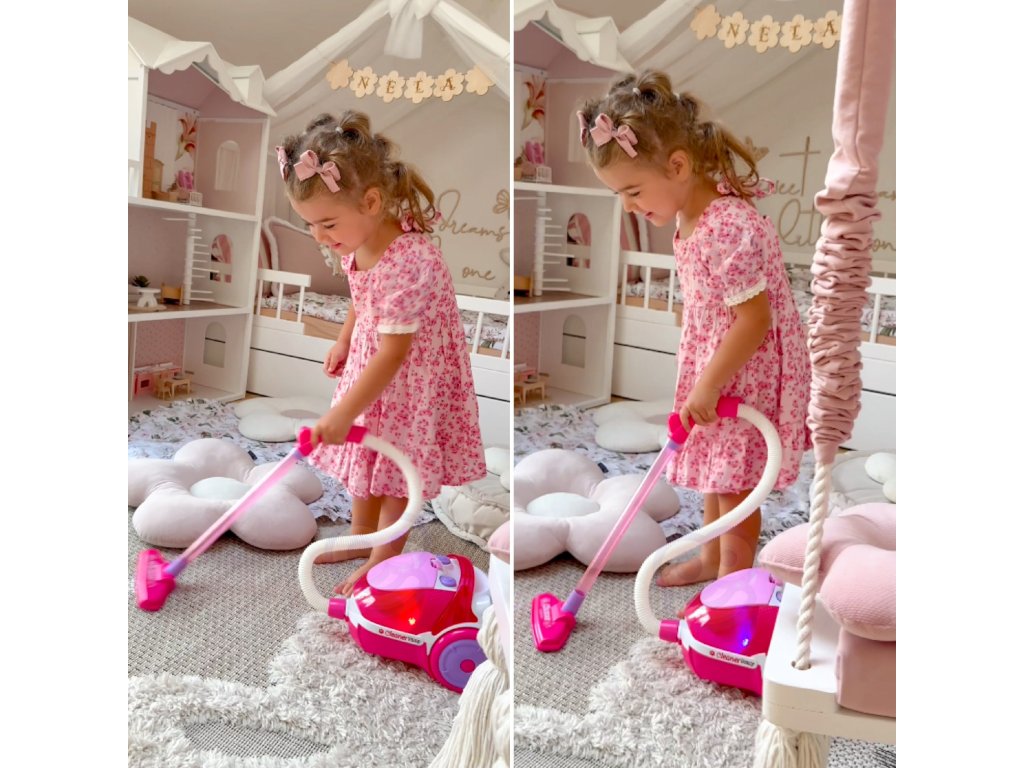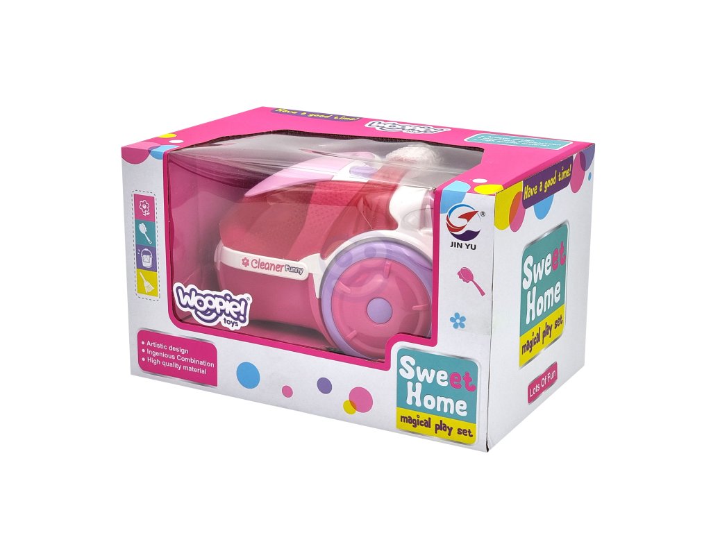Ružový vysávač z adresyWoopie je ideálny pre malé deti.Funkcia odsávania a zvuk bude hra na čistenie ešte realistickejšia.Odnímateľný zberný box sa dá ľahko vyprázdniť. Vyrobené z vysoko kvalitného materiálumateriály bezpečné pre deti. Je ideálny ako darček prepomáhať dieťaťu napodobňovať rodičapretože ktoré dieťa by nechcelo byť dospelým?