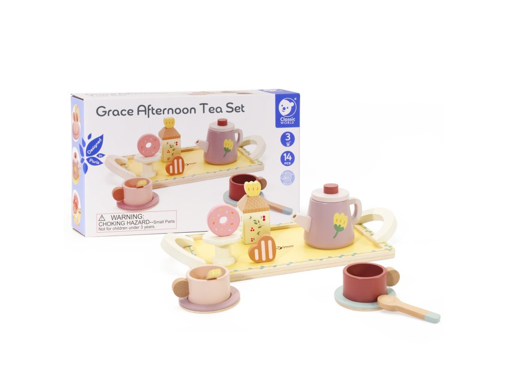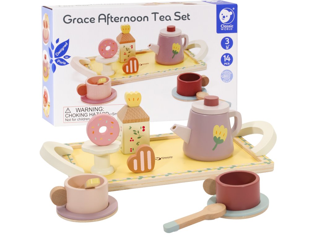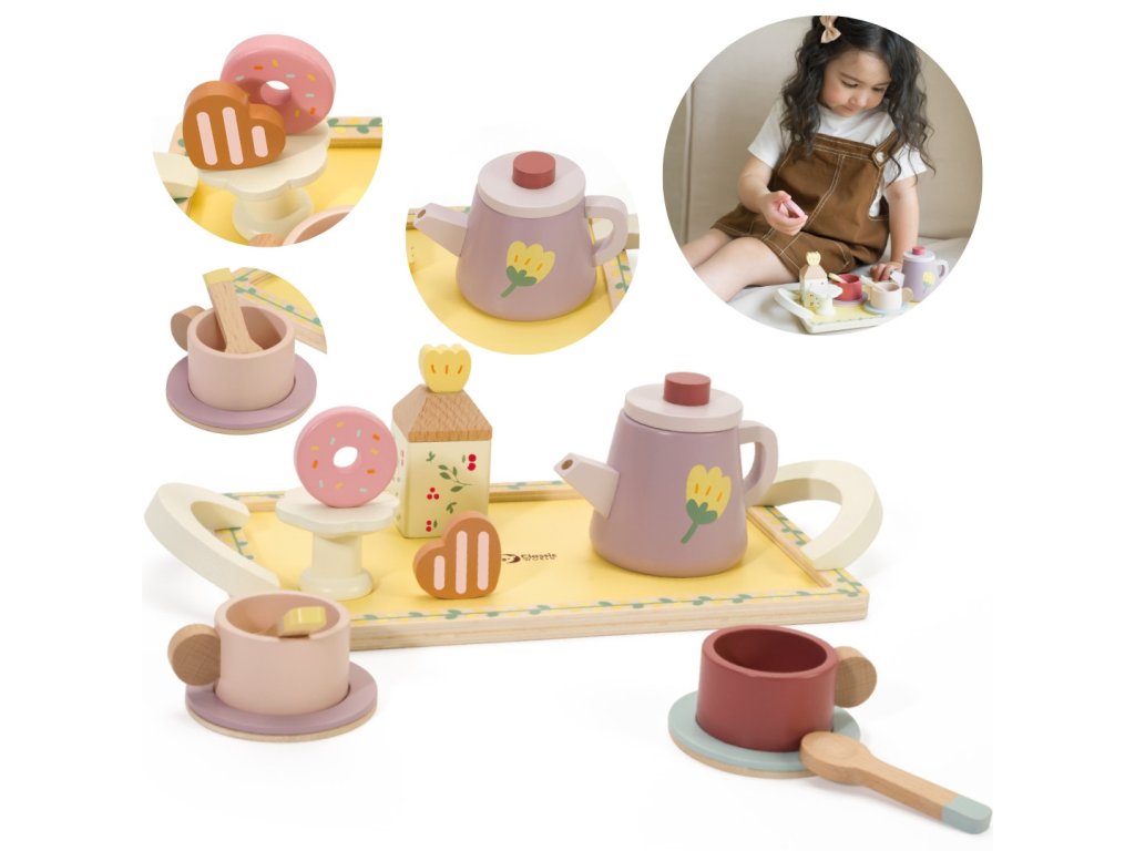 Drevené súprava pre čaje idezerty z adresyKLASICKÝ SVETje skvelou voľbou pre deti, ktoré chcú preberať rôzne úlohy v každodennom živote. Očarujúce pastelové farby vaše dieťa potešia a doplnky, ako napr.čajová kanvica,šálky adezerty stimulovaťpredstavivosť a tvorivosť Vaše dieťatko.