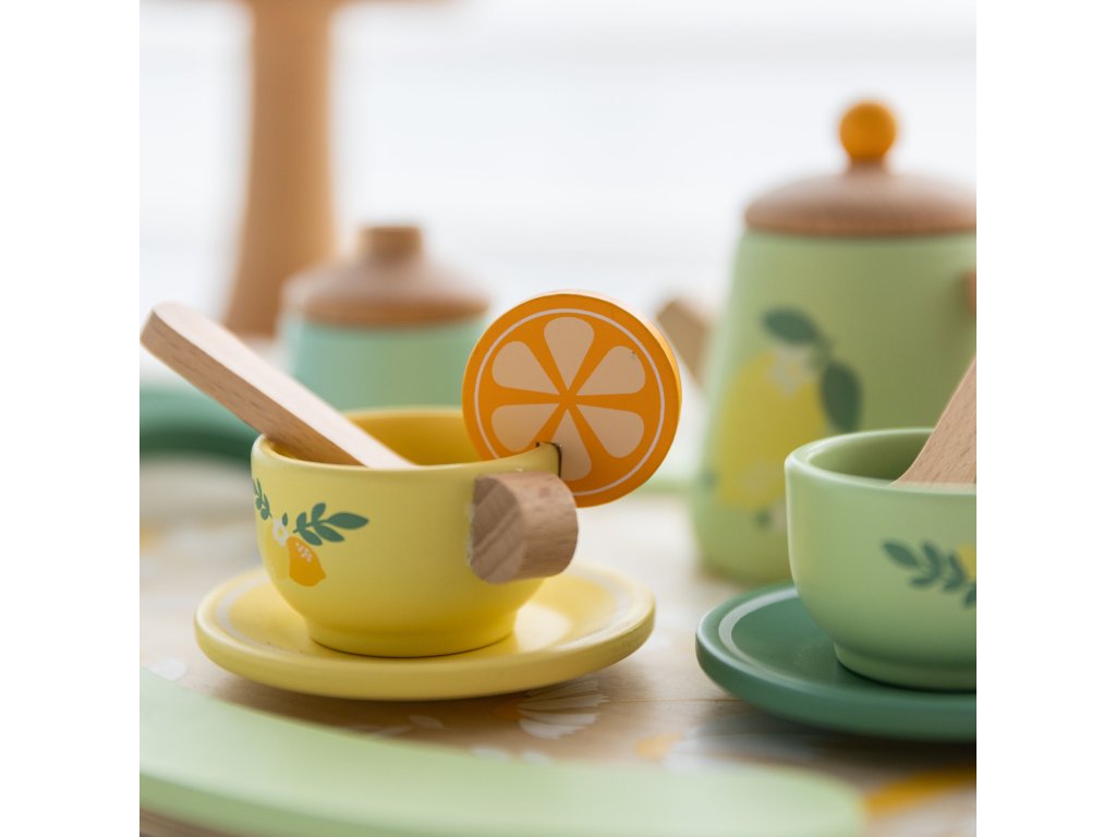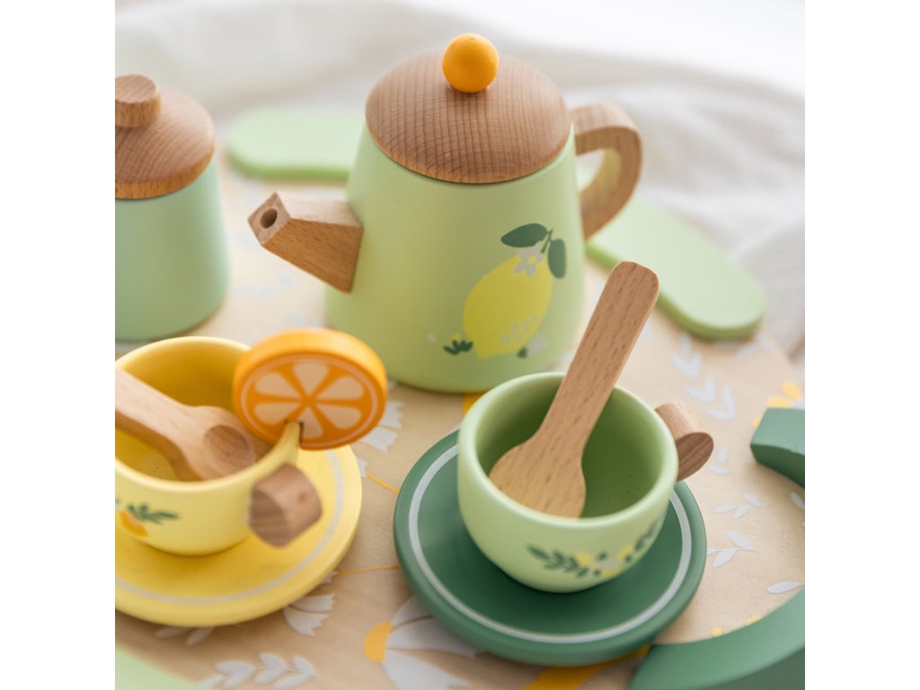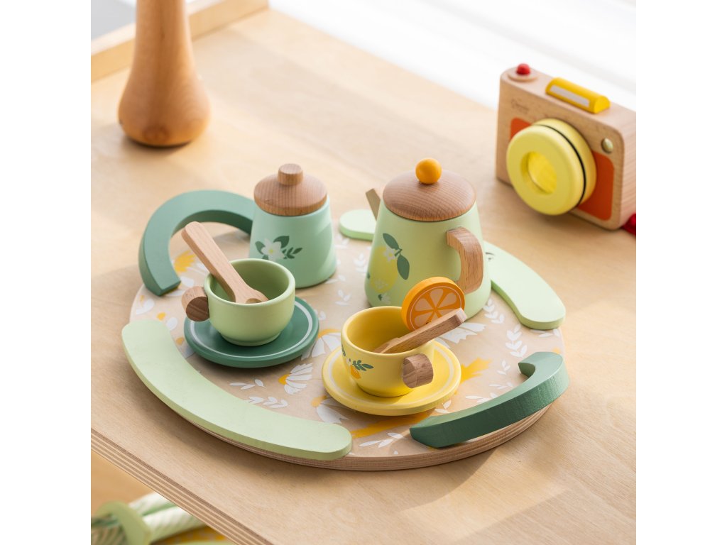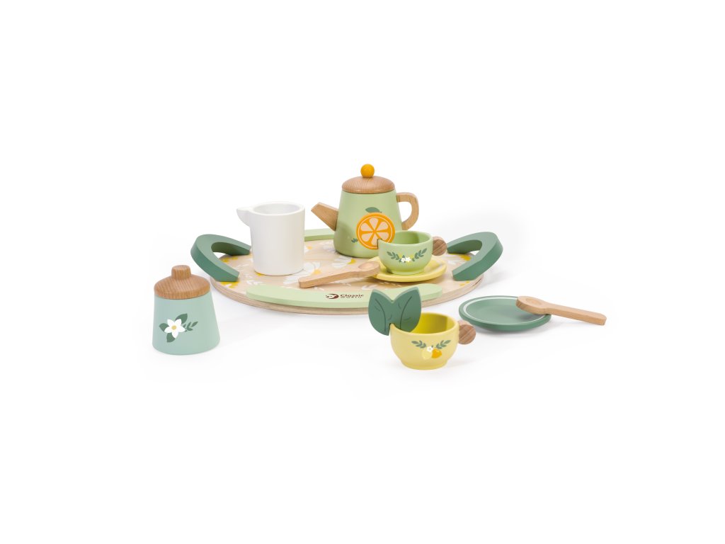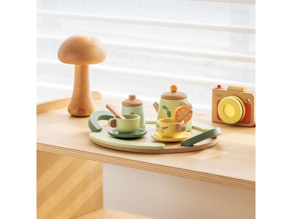 Čajová súprava od spoločnostiKlasický svet je skvelým nápadom na hodiny zábavy pre vaše dieťa. Vaše dieťatko vás nejedenkrát prekvapí a podálahodný čaj. Premeňte popoludňajší čaj na krásny rituál s rôznymi doplnkami, vrátane: dvoch šálky v rôznych farbách,kanvica a podnos v kvetoch a rôznych čajových doplnkoch. Krásnepastelové farby ešte viac povzbudí vaše dieťa k hre. Súprava bola z masívneho dreva, aby si vaše dieťatko mohlo bezpečne dopriať porciu chutného čaj.