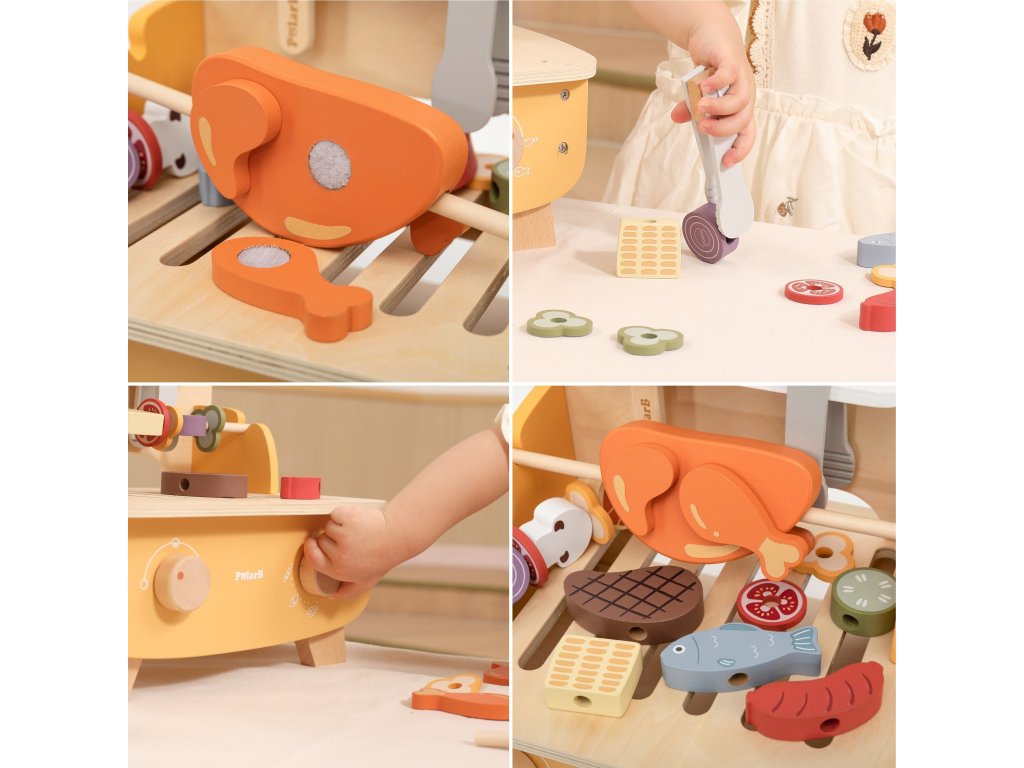Rozvíjajte fantáziu svojho dieťaťa s jedinečnou grilovacou súpravou od značkyVIGA ! Deti užod veku 18 mesiacov sa môžu vžiť do úlohy malých kuchárov a hrať sa na grilovanie ako dospelí. Špízy na otáčanie, korenie na posypanie a realistické príslušenstvo robia hru mimoriadne autentickou.22 prvkovumožňujú nekonečné kombinácie chutí - od kuracieho mäsa cez ryby až po pestrú zeleninu. Je to dokonalý spôsob, akorozvoj kreativity, manuálnych zručností inaučiť sa rozpoznávať jedlo vo forme bezpečnej drevenej hry.