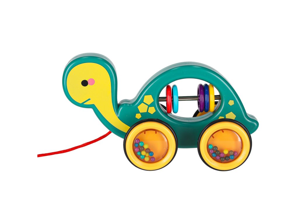 Skvelou voľbou pre prvého zvieracieho kamaráta je drevená hrkálka na šnúrke v tvare korytnačky!