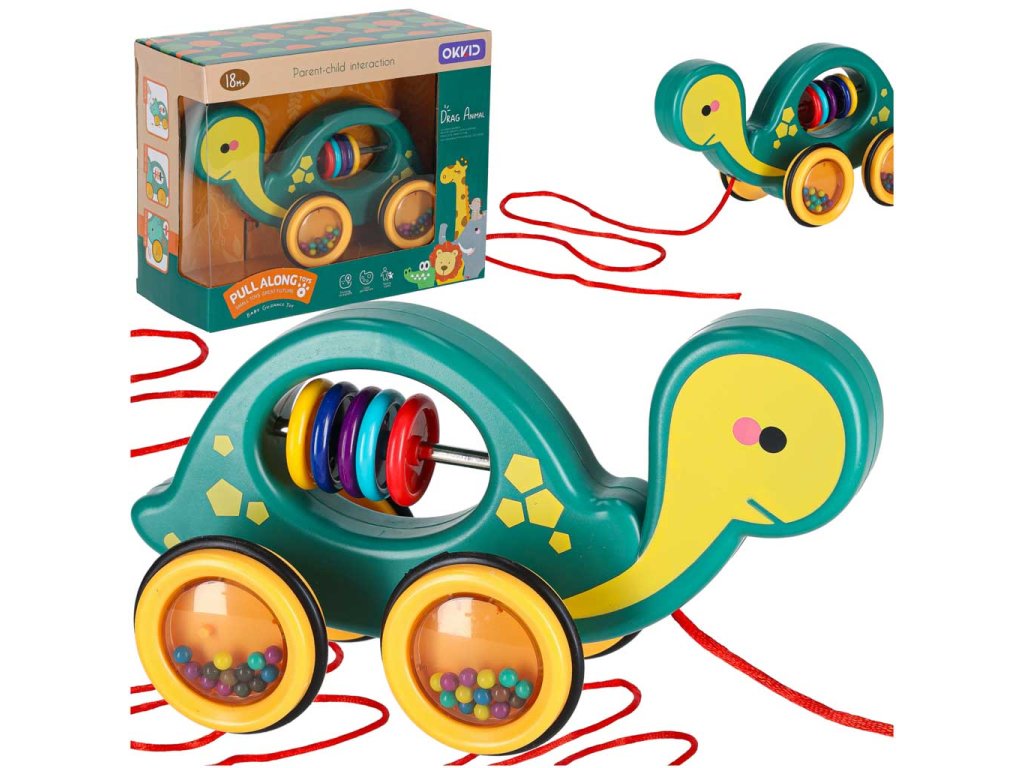 K hrkálke je pripojená dlhá šnúrka, ktorá vám umožní pohodlne ju ťahať! To vám umožní vziať korytnačku na dlhú prechádzku a veľké dobrodružstvo!