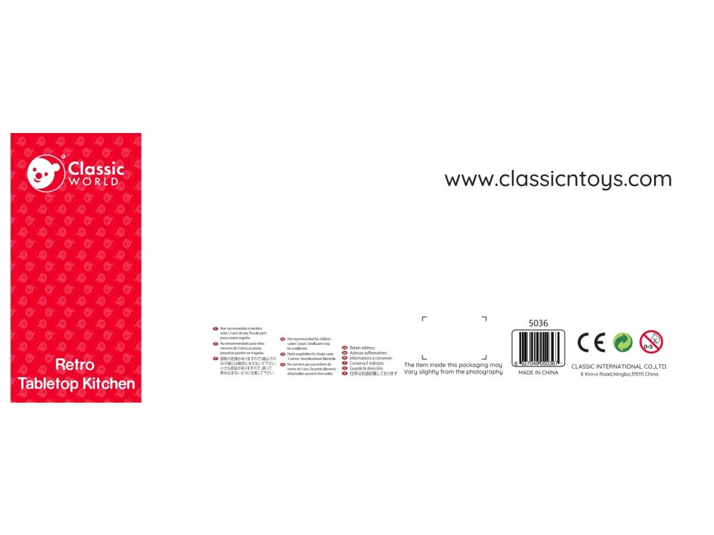 | GPSR: | Classic Toys (Ningbo) Co., Ltd. | No.8 Xinrui Road, Wuxiang Town Industry Park, Yinzhou District, Ningbo, Zhejiang, China | andy@classicntoys.com |