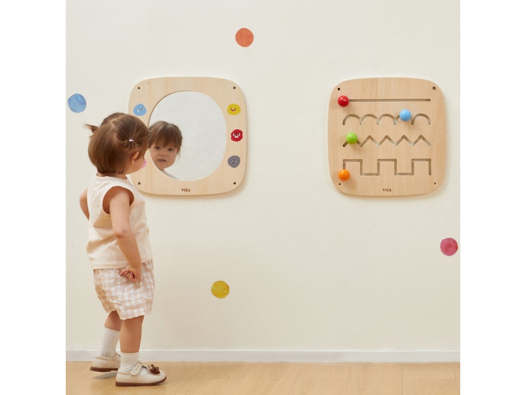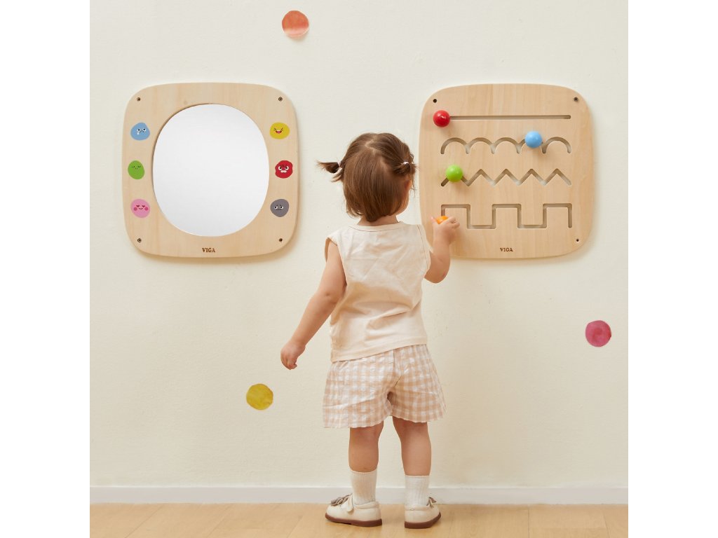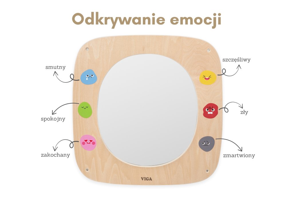 Táto stránkadrevená doska od značkyViga je ideálnym nástrojom na učenie hrou, ktorý bol navrhnutý s ohľadom na malé deti. Produktpomáha pri emocionálnom a motorickom vývojiumožňuje batoľatám interaktívnym a pútavým spôsobom spoznávať svet emócií.V strede tabule sa nachádzabezpečnostné zrkadlo, obklopený šiestimi farebnými výraznými tvárami, ktoré predstavujú rôzne emócie, ako napríklad radosť, smútok, hnev alebo pokoj. Dieťa môže pozorovať svoj odraz a napodobňovať tváre, ktorépodporuje emocionálne povedomie a pomáha koordinovať tvárové svaly. Tabuľu možno ľahko pripevniť na stenu a jej pevná drevená konštrukcia zaručuje odolnosť a bezpečnosť počas hry.
