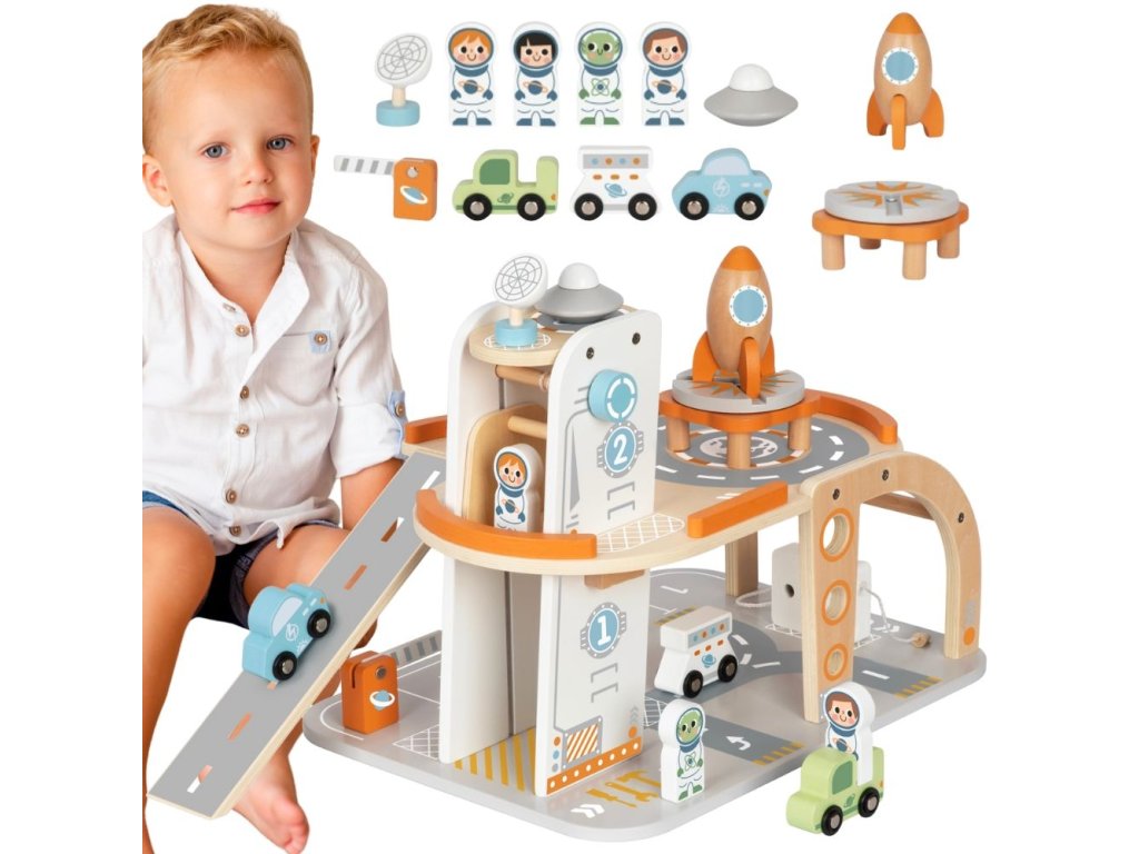 Drevená vesmírna stanica s raketovou značkouTooky Toy prenesie vaše dieťa do sveta medzihviezdnych misií a veľkých objavov. Je to prepracovaná súprava prehranie vo vesmíre, v ktorej môžu malí astronauti vzlietnuť v rakete, pristávať s vozidlami, skúmať základňu a vytvárať vlastné príbehy s viacerými úrovňami konštrukcie. Starostlivo vytvorené dieliky podnecujú k dlhej, tvorivej hre - či už samostatne, alebo so súrodencami či rodičmi.