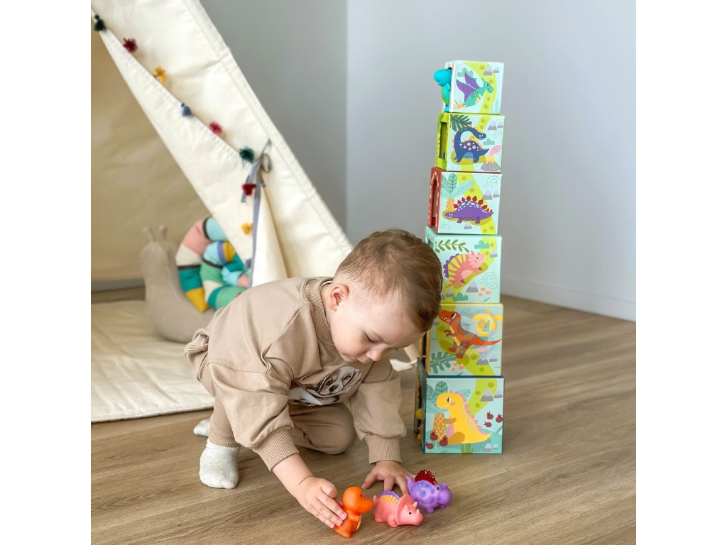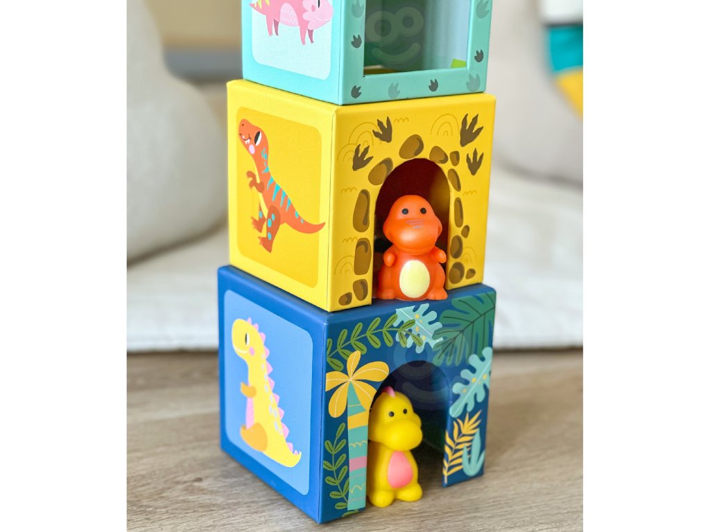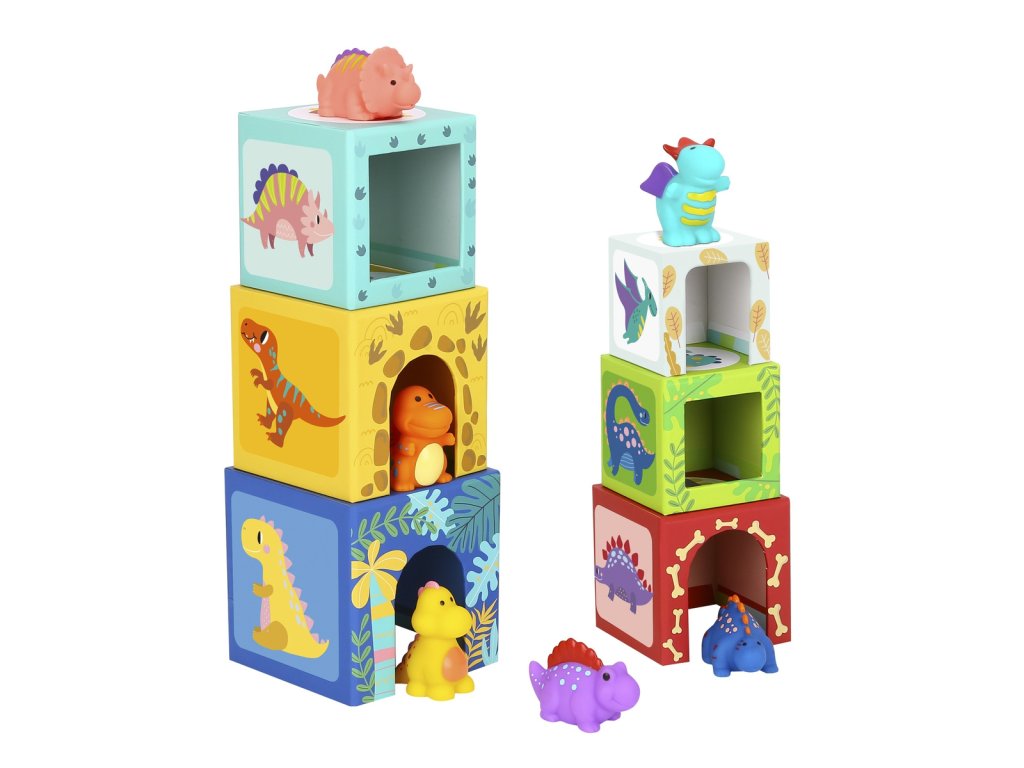 Drevené bloky TOOKY TOY vzdelávací triedičje skvelá zábava pre každé batoľa. Zábava spočíva v tom, že dieťa musí priradiť postavičku dinosaura k správnemu bloku, na ktorom je vytlačené správne zviera. Táto súprava obsahuje6 rôznefarebné dinosaury a6 škatúľ s potlačou zvierat.