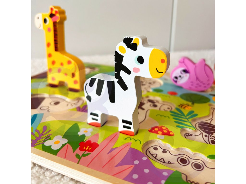 - - Súprava obsahuje: doska so zárezmi a7 kusov zobrazujúcich zvieratá z džungle,