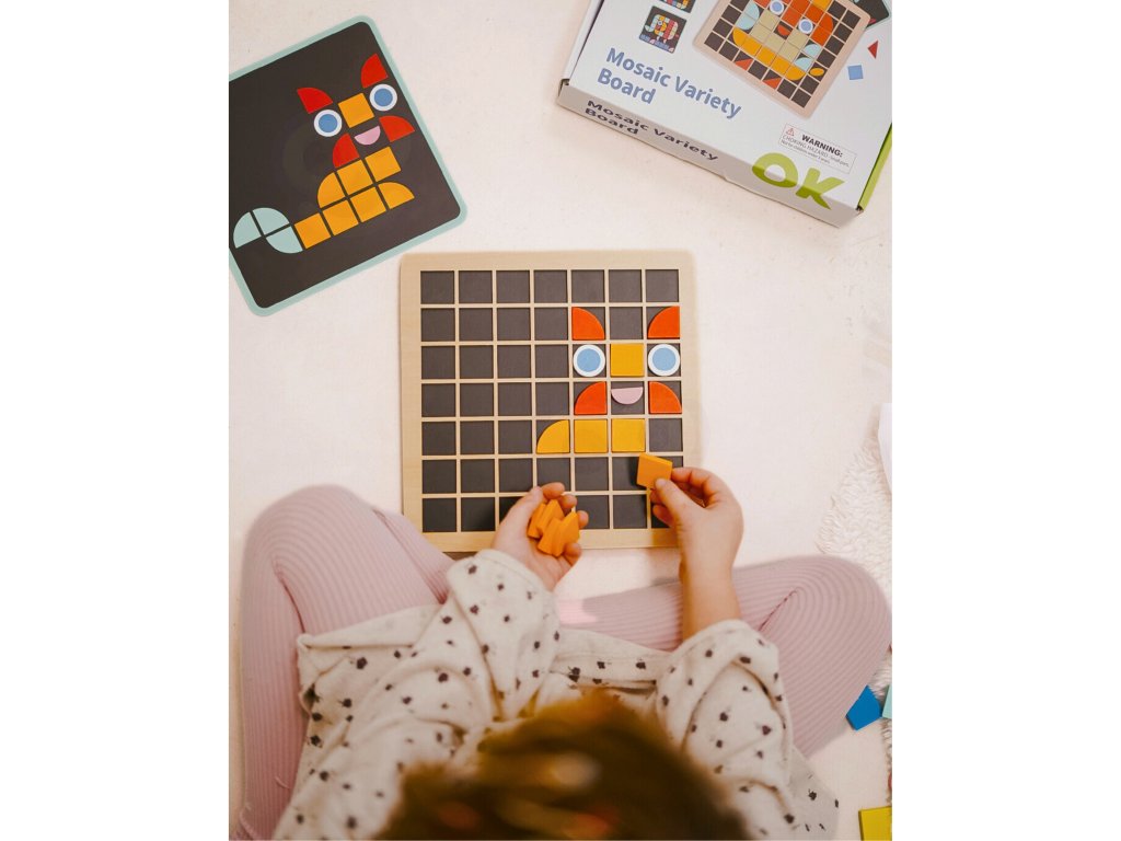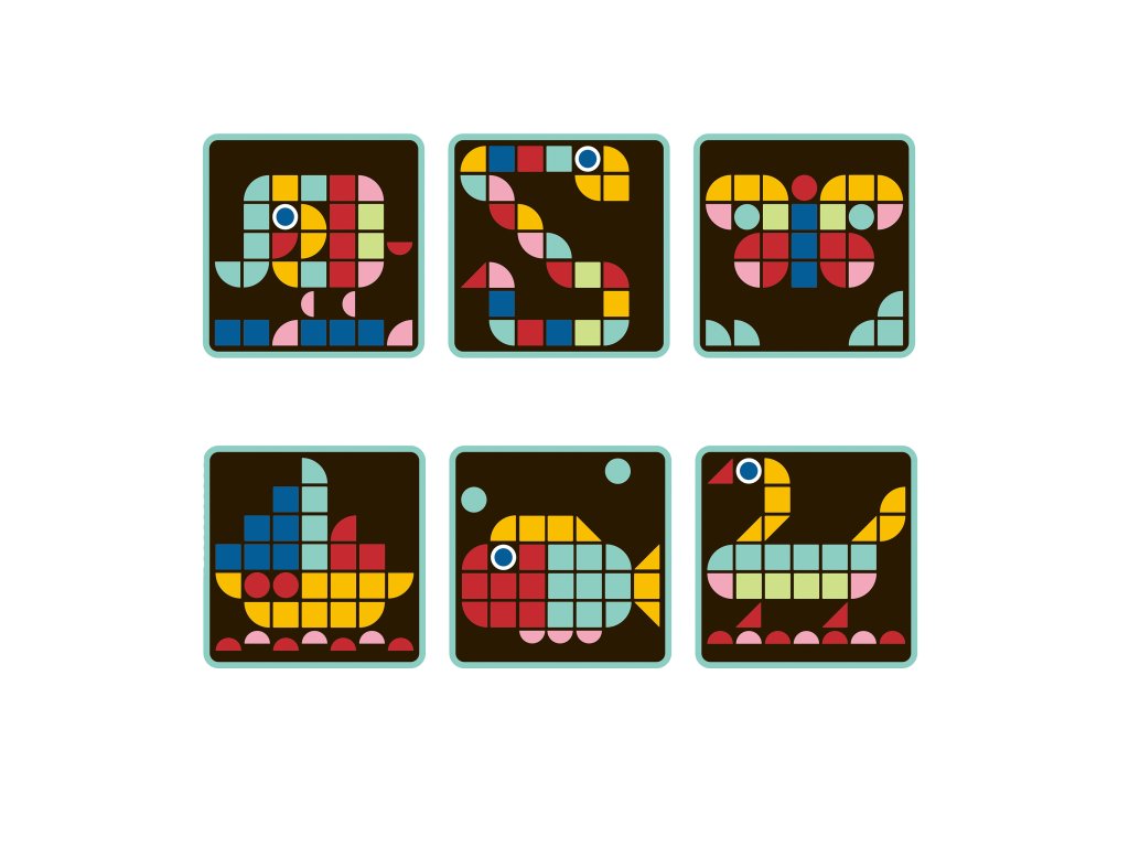 - - Sada mozaiky podporuje deti v poznávaní farieb, tvarov a rozvíja ich kreativitu
