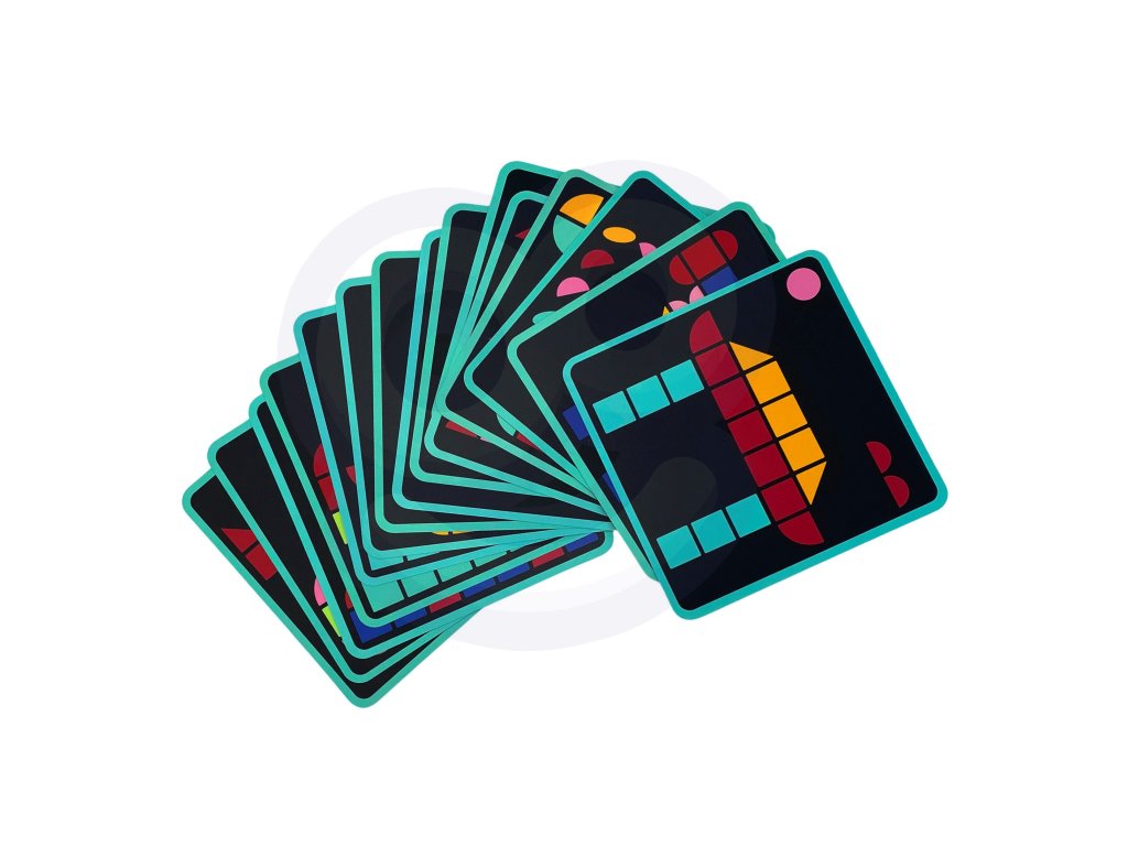 - - Pomocou vzorových kariet môžu deti samy vytvárať tvary a vzory