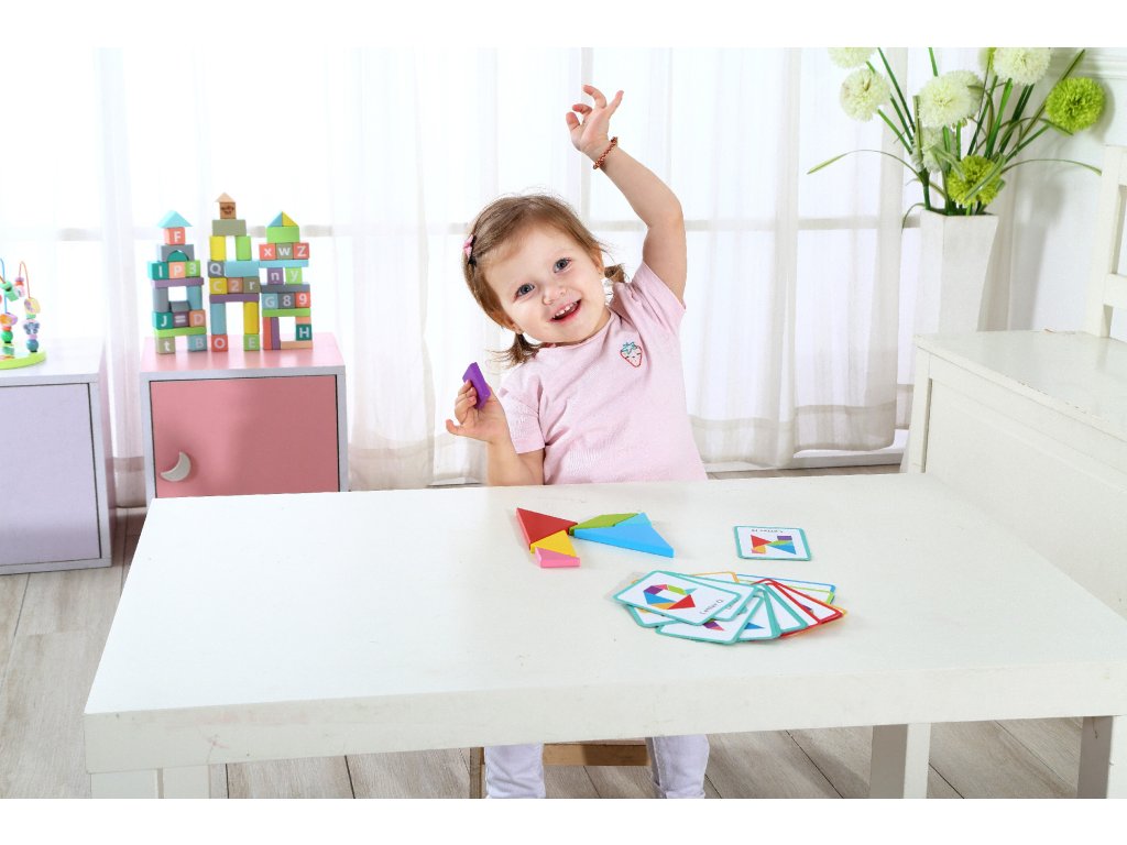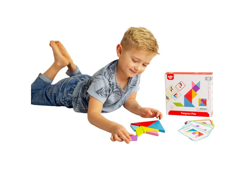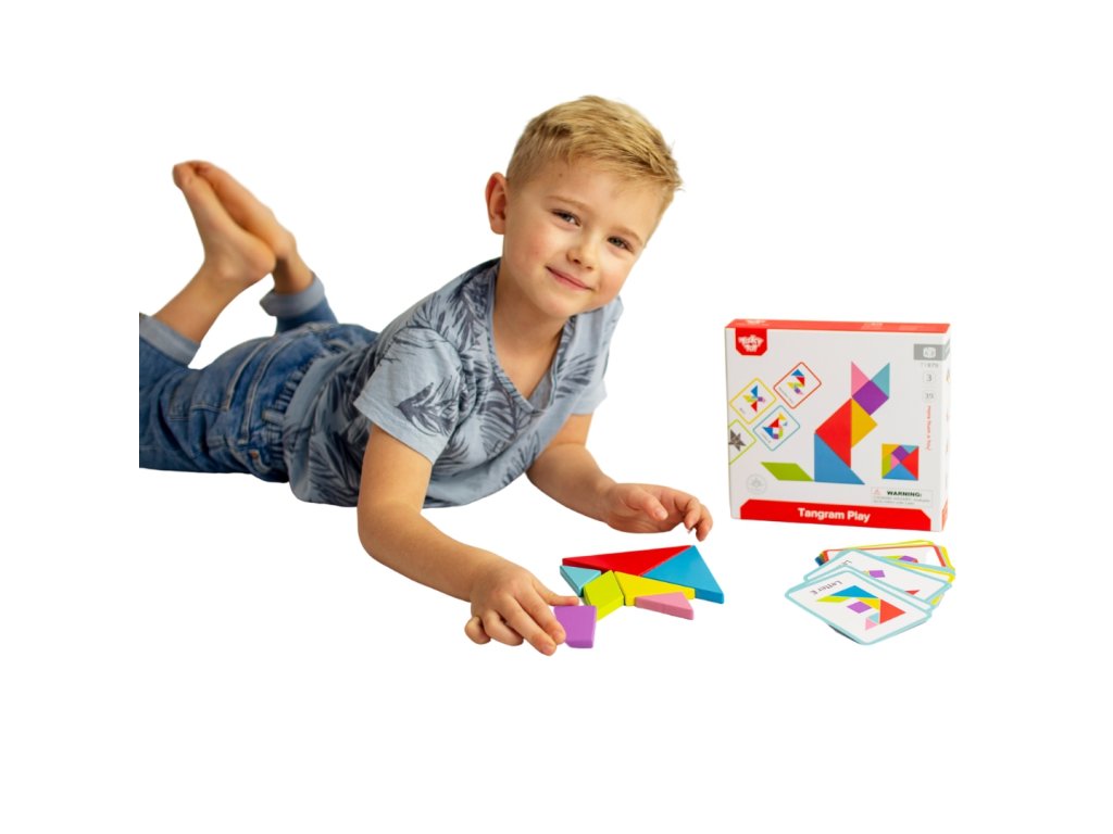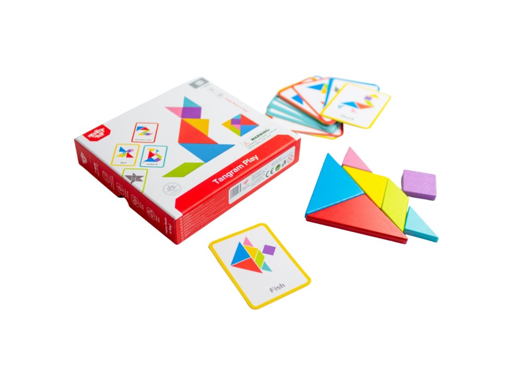 Tangram puzzle od značky Tooky Toyje ideálnym produktom pre malých obdivovateľovhry. Takáto hračka je skvelá na rozvoj zručnosti logického myslenia & kreativita. Dieťa cvičí svoje koncentráciaa príležitostne možno naučiť sa farby a tvary.