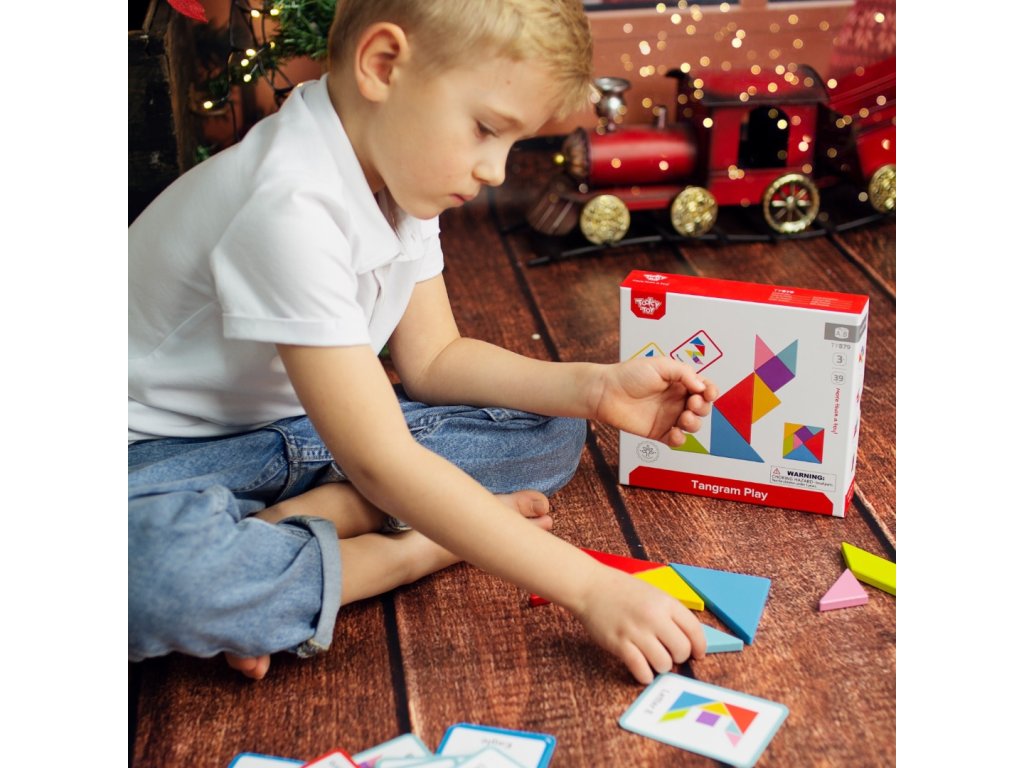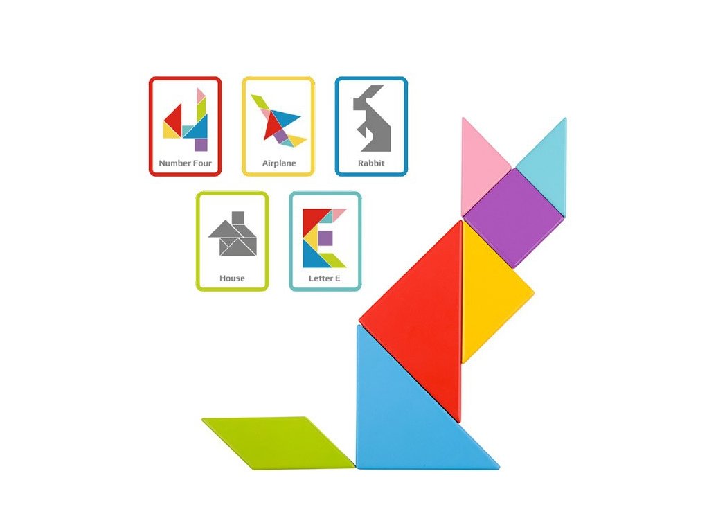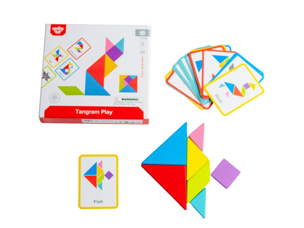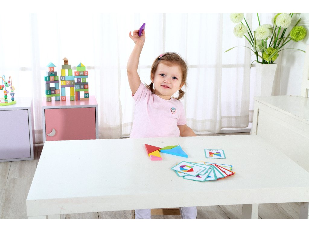 Tangram puzzle od značky Tooky Toyje ideálnym produktom pre malých obdivovateľovhry. Takáto hračka je skvelá na rozvoj zručnosti logického myslenia & kreativita. Dieťa cvičí svoje koncentráciaa príležitostne možno naučiť sa farby a tvary.