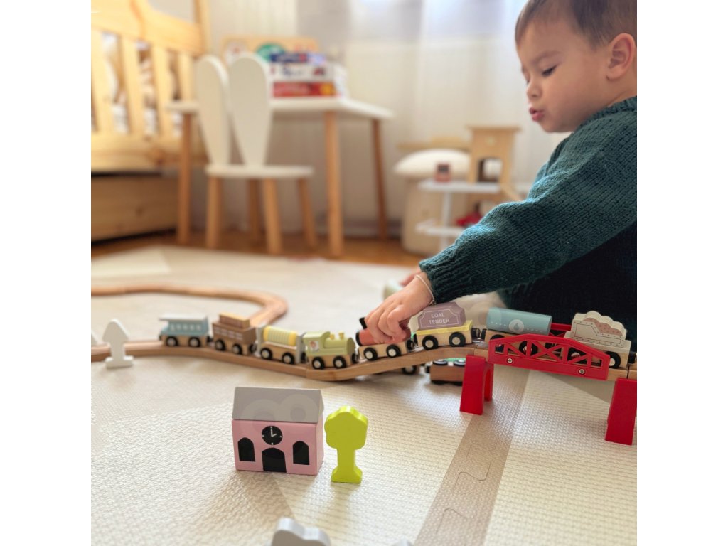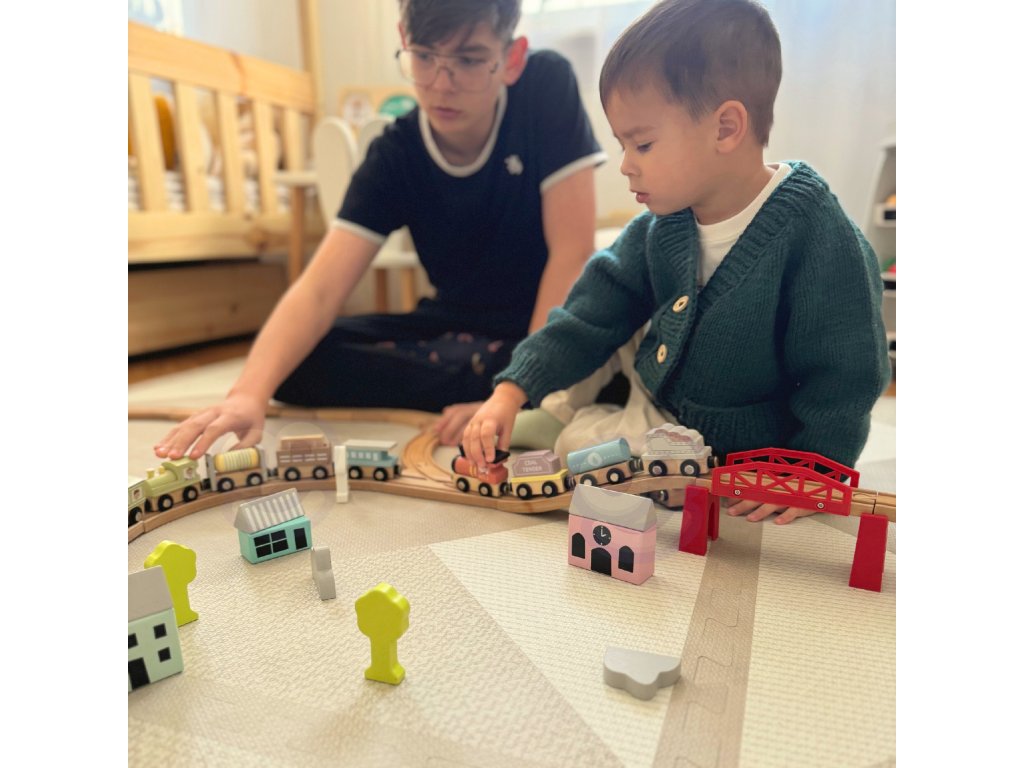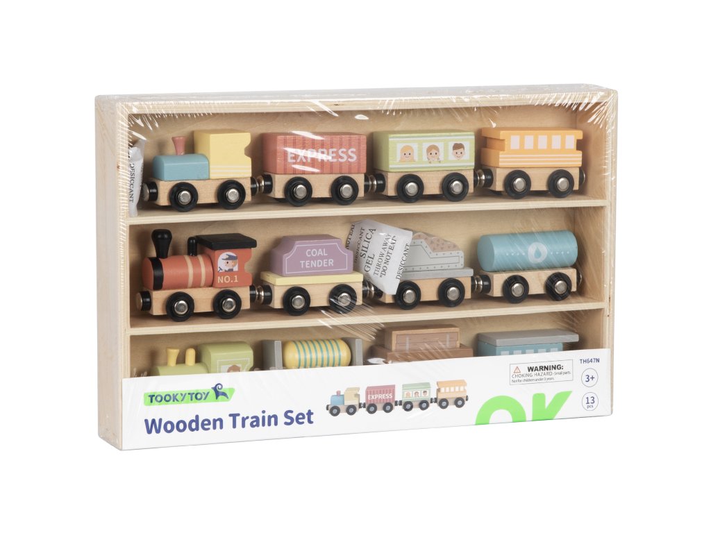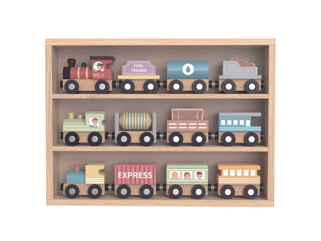 Nastupte do rýchlika. Vaše dieťa sa bude s týmto vlakom skvele baviť12-dielna súprava magnetické vlaky a vagóny od spoločnostiTooky Toy. Každá sada obsahuje3 vlaky i9 vagónovktoré łsú spojené magnetmi. Či už prevážate uhlie, benzín alebo ľudí, táto vlaková súprava podnieti deti k hre. Keď sa súprava nepoužíva, dá sa úhľadne zložiť a vystaviť v drevenom kontajneri, v ktorom je zabalená. Každá drevená súprava vlaku a vagóna od spoločnosti Tooky Toy je vyrobený z dreva a dokončený v najvyššej kvalite.
