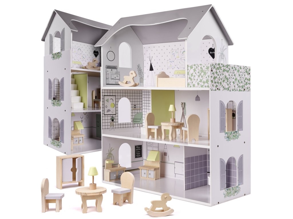 Krásny drevený domček pre bábiky v modernom štýle bude splneným snom každého dieťaťa!