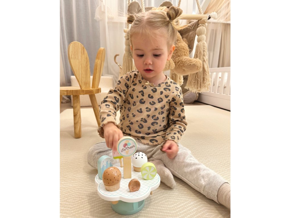 Drevená sada magnetickej zmrzliny na stojaneod značkyTooky Toy, je skvelou voľbou pre deti, ktoré sa rady kreatívne hrajú.Zmrzlina v krásnom, chutnompastelové farby vyrobené s dôrazom na detail. Táto súprava je ideálna na hru na obchod, kde sa batoľatá môžu vžiť do úlohy predavačov zmrzliny, aj ako rozkošné doplnky do detskej kuchynky. Súprava je vyrobená s maximálnou starostlivosťou a vyniká svojou krásne pastelové farby a praktickosť, ktorá zaručujemnoho hodín zábavy a kreatívnej hry Hra na dom, hra na obchod a napodobňovanie rolí dospelých - tvorivý spôsob vytvárania sociálnych vzťahov a rozvíjania a skúmania slovnej zásoby. Magnety zabezpečujú stabilitu zmrzliny. Ideálne na tvorivú hru!
