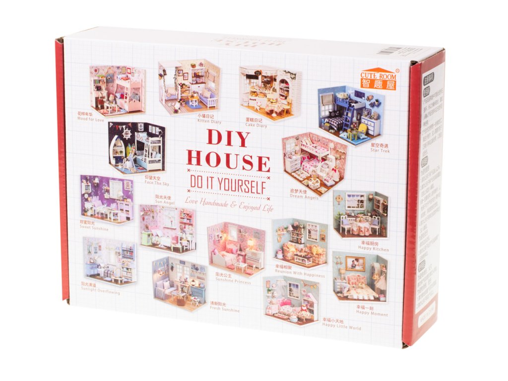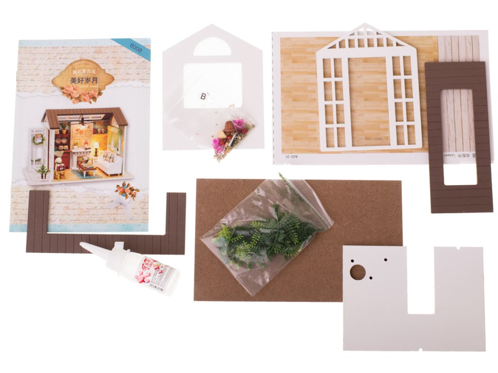 Drevený model obývacej izby pre bábiky na zostavenie LED 8008-A