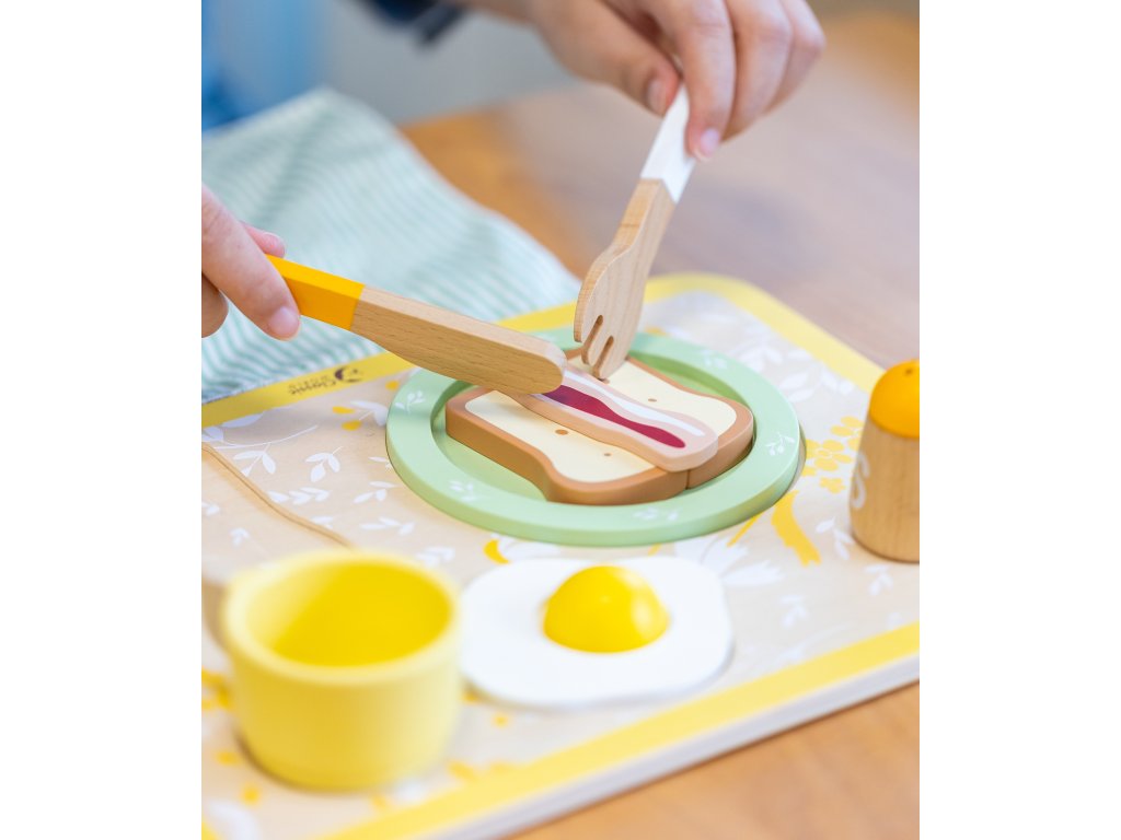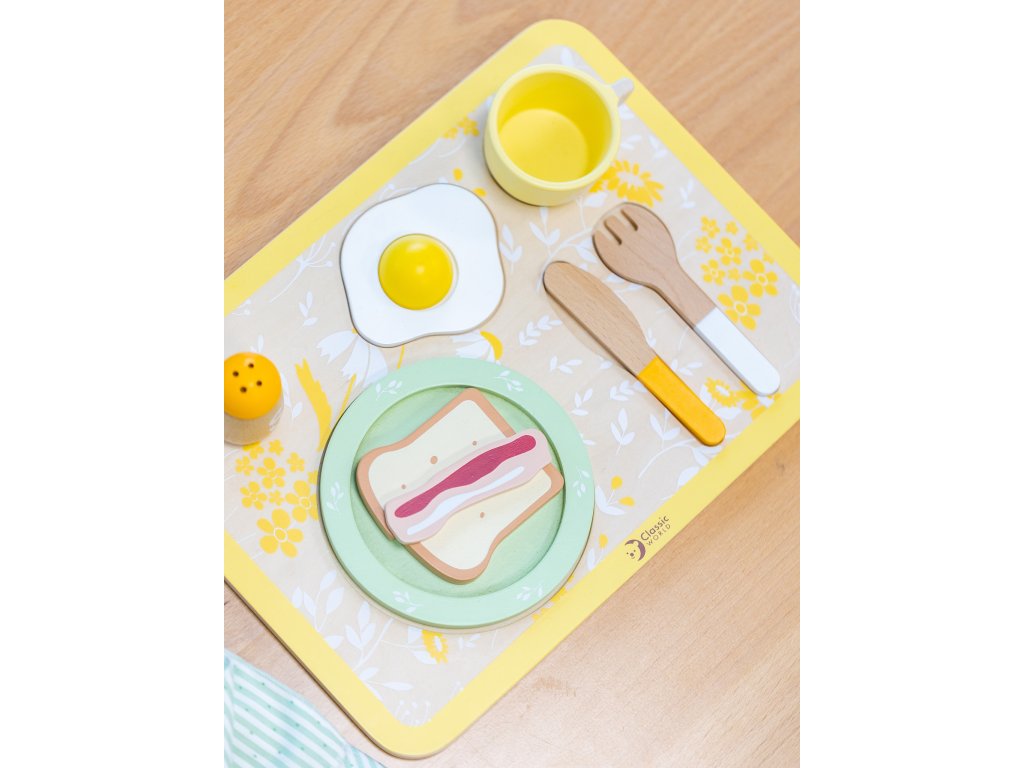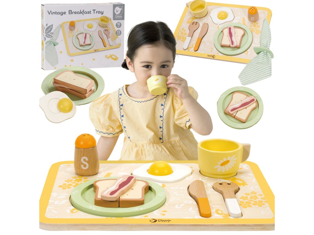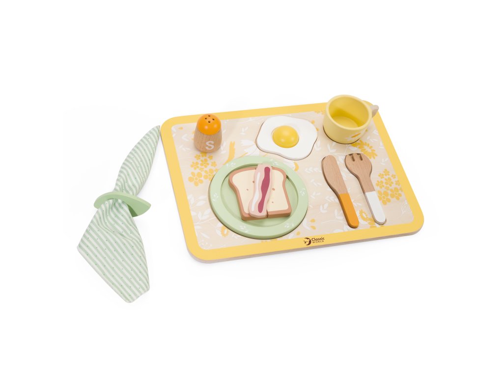 Súprava na raňajkyod značky CLASSIC WORLD dodá vášmu dieťaťu energiu na celý deň a dokonale povzbudí jeho kreativitu.Sada obsahuje samostatné vajíčko, toast a slaninu, nôž a vidličku atď. Môže ponúknuť mnoho nápadov na hru, ako ajpomáhať deťom pestovať dobré správanie pri stole.
