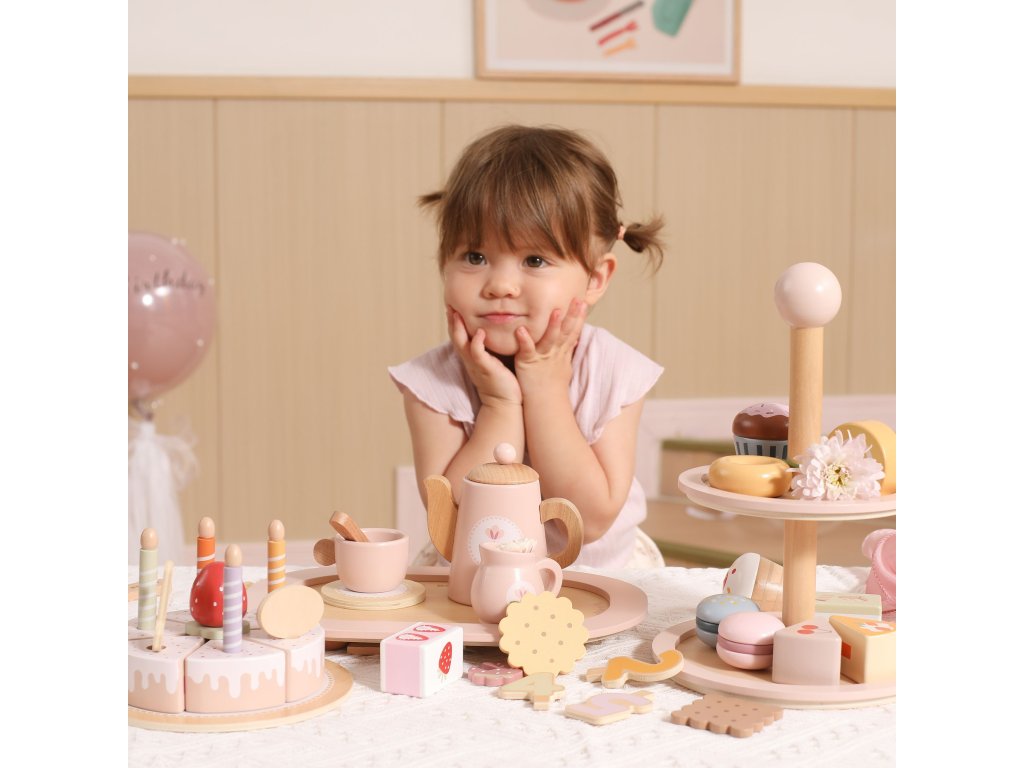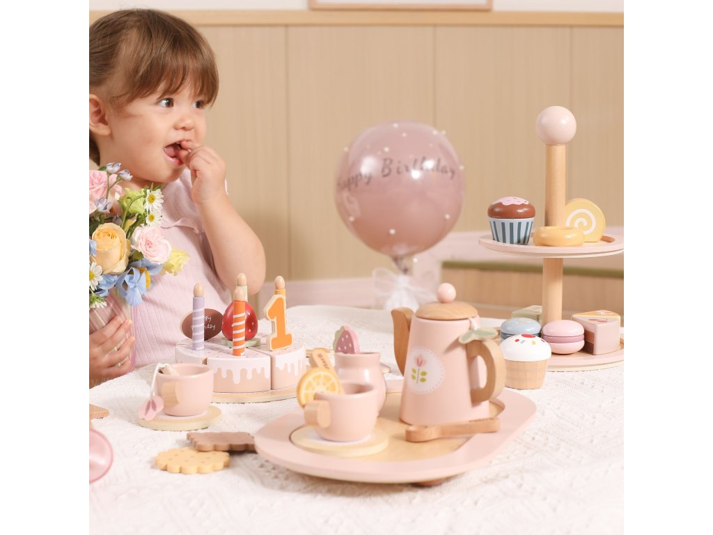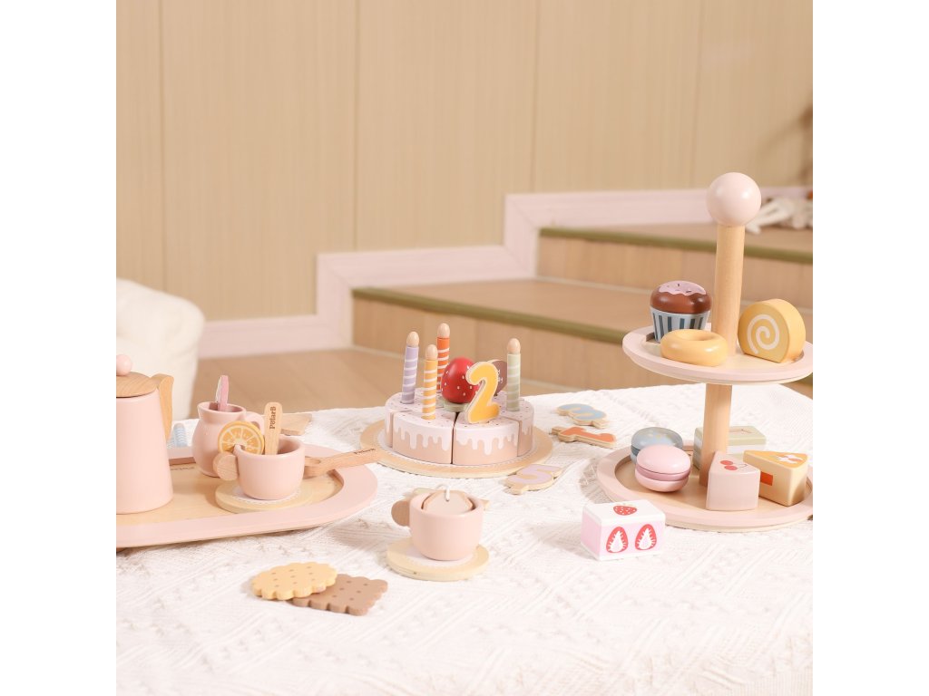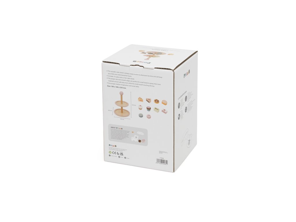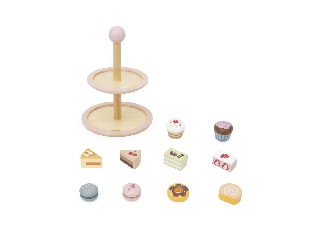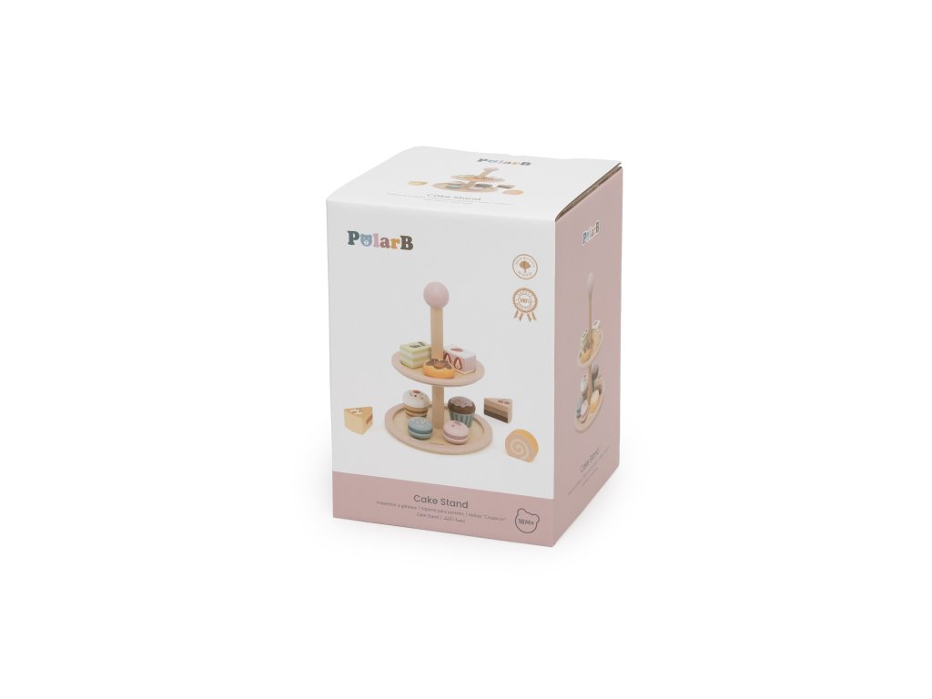 Pozvite svoje dieťa do sveta kaviarenských hier!Drevený stojan na tortu značkyViga PolarB je elegantný dvojposchodový tanier s farebnými sladkosťami, ktorý spríjemní každý popoludňajší čaj. Sada obsahuje až 10 rozkošných sušienok a koláčikov, vyrobené z bezpečných, netoxických materiálov. Vďaka hladkým okrajom a ideálnej veľkosti je hračka pohodlná na uchopenie malými rúčkami. Je to nielen skvelá zábava, ale aj spôsob, akorozvíjanie predstavivosti, tvorivosti a sociálnych zručností dieťaťa.