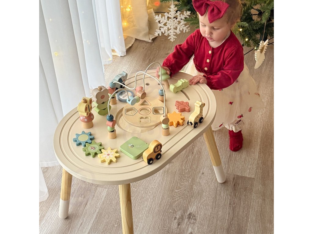 - - Koncentrácia a samostatnosť: Stôl podporuje samostatnú hru a učí dieťa sústrediť sa na danú činnosť.