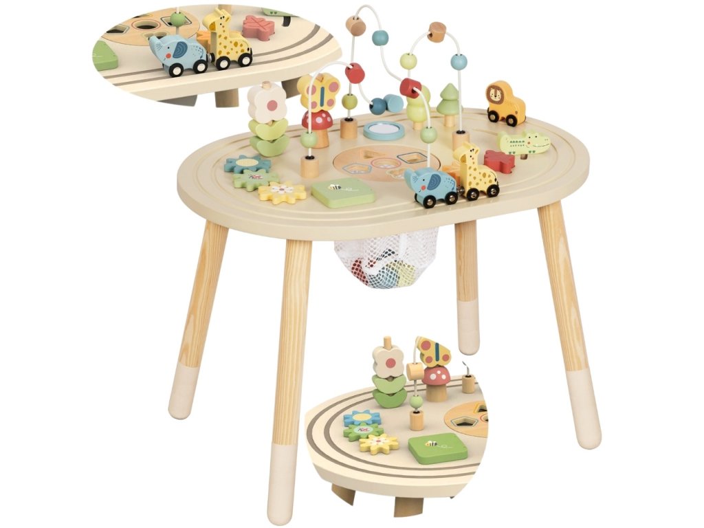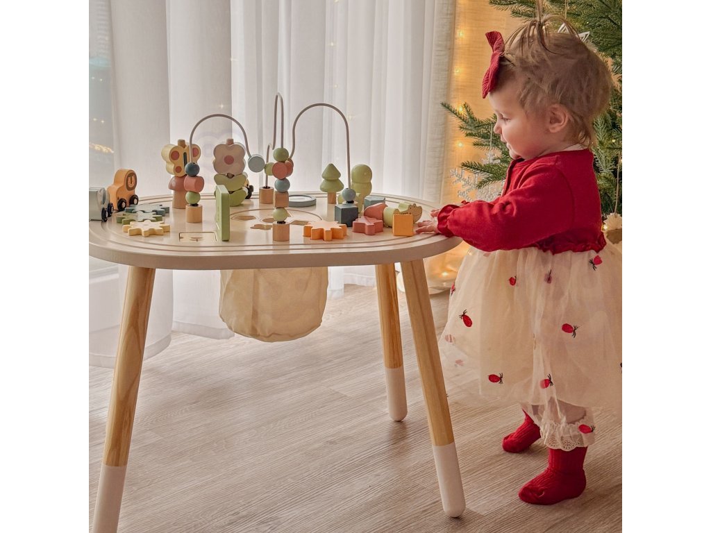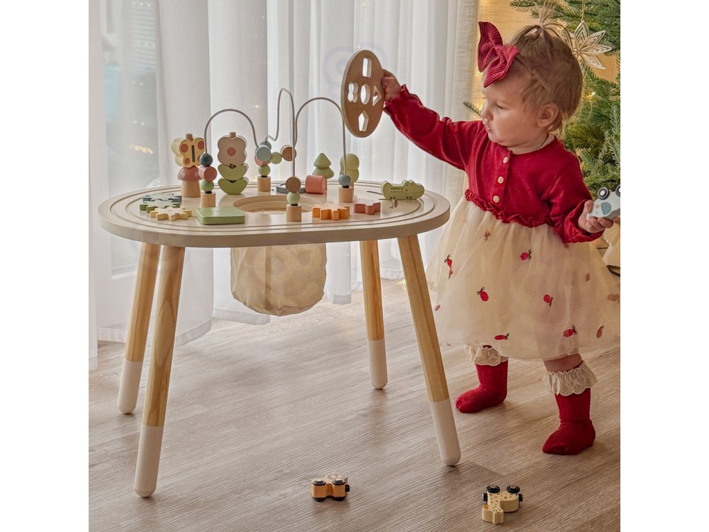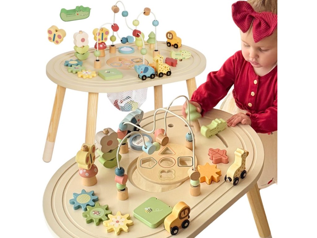 Táto stránkaroztomilý drevený stôl na učenie je ideálny pre najmladších objaviteľov! Tento stôl jeskutočný poklad pre batoľa - okamžite ho vtiahne do sveta farieb, tvarov a veselých zvukov a zároveň rozvíja množstvo dôležitých zručností.Nechajte svoje dieťa slobodne objavovať a učiť sa vbezpečné prostrediekde každý dotyk a každý pokus zapadnúť je malým úspechom. Je to dokonalý priateľ na hodiny zábavy,ktorá rastie spolu s vaším dieťaťom a nikdy ho neomrzí.
