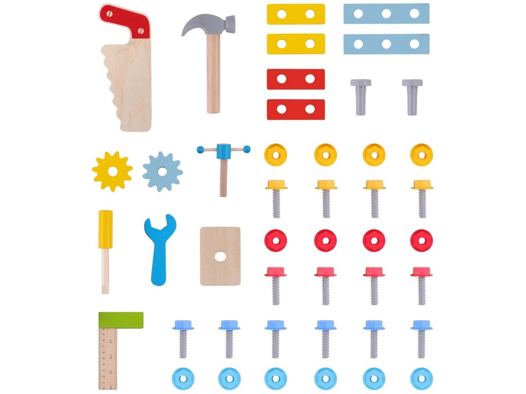 - - hračkárske náradie: kladivo na pílu, kľúč, skrutkovač, meter,