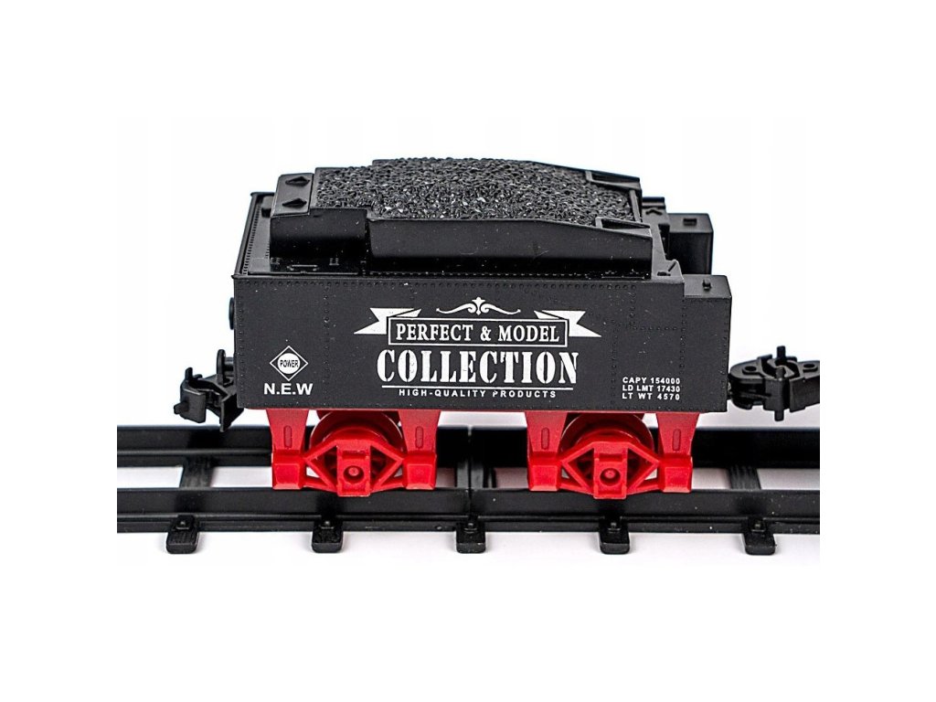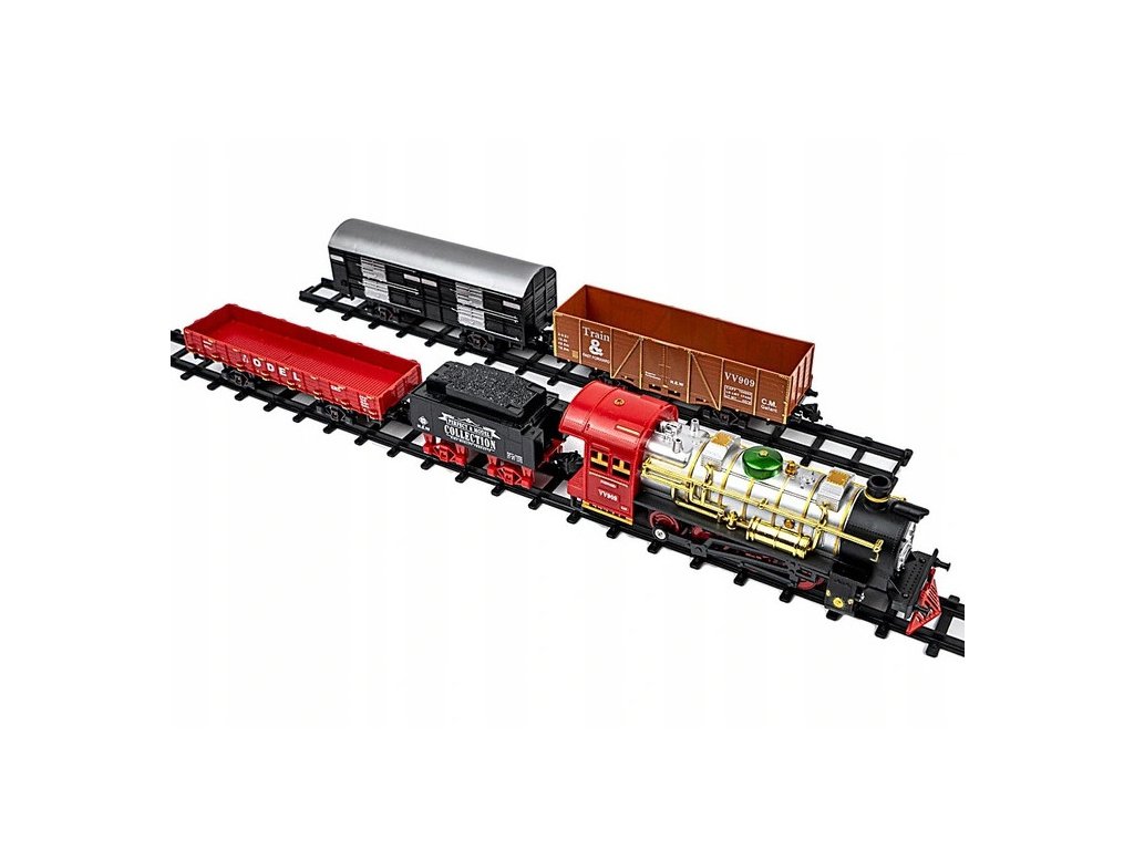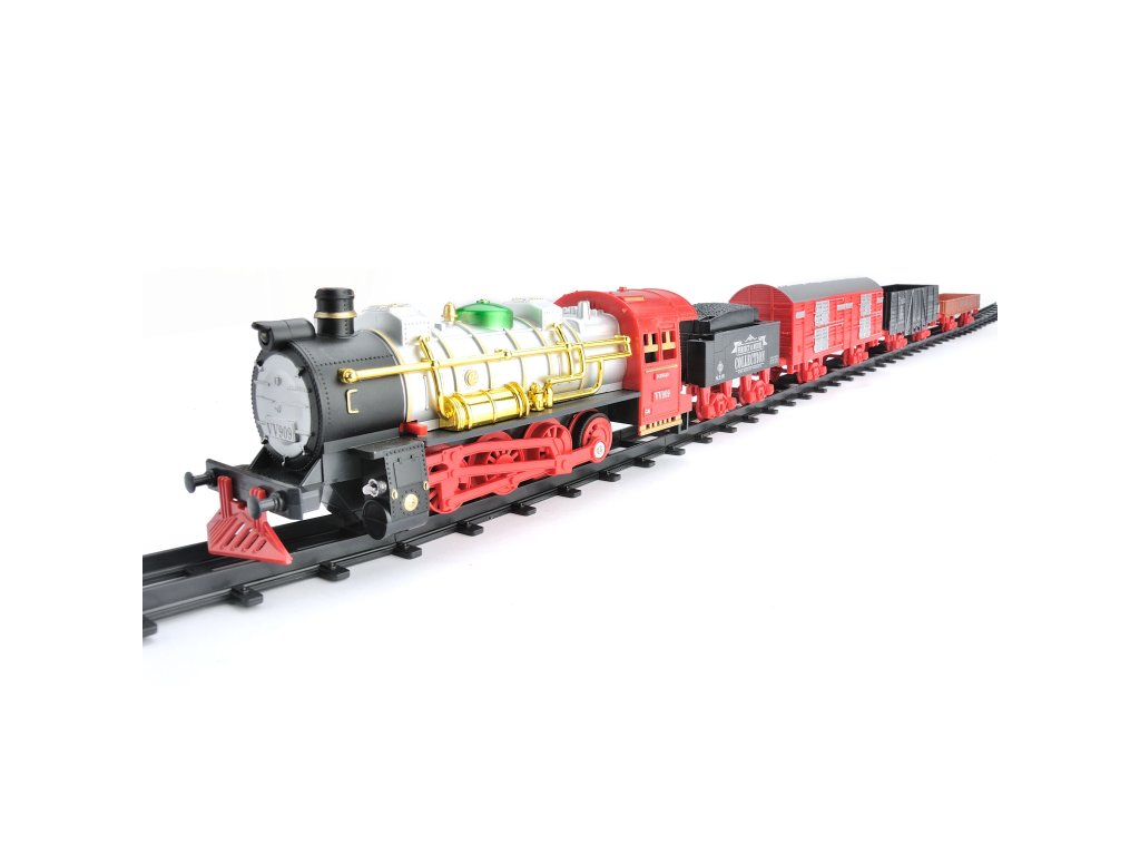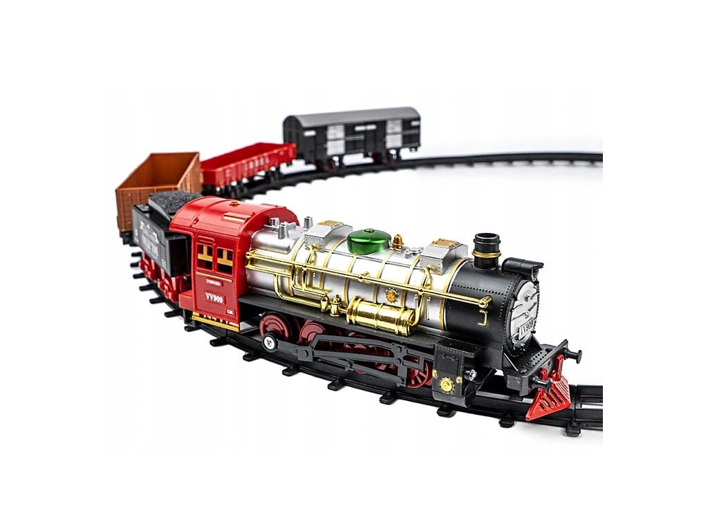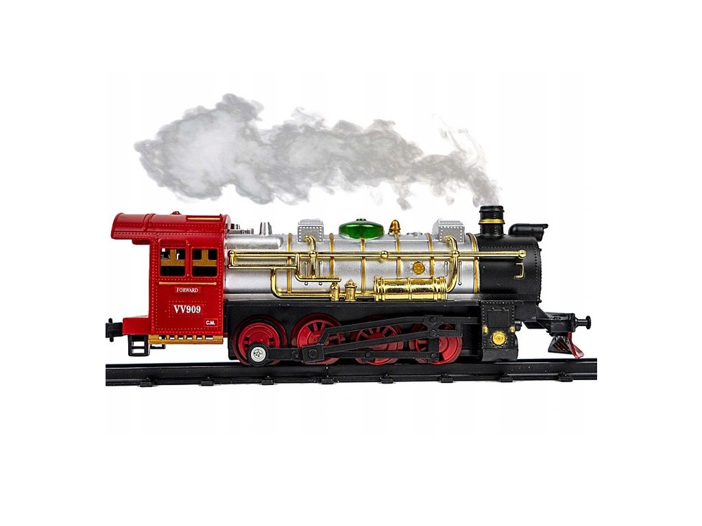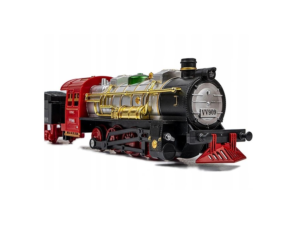 je skvelá hračka, ktorá vytvorí tú pravú rodinnú Vianočnú atmosféru. Každému malému motoristovi poskytne veľa zábavy a radosti. Výrobok je vyrobený s mimoriadnym dôrazom na detail. Súprava obsahuje: trať, historickú čierno červenú lokomotívu, vagón na uhlie a vagóny. Hra stimuluje každému dieťaťu kreativitu, predstavivosť ako aj rozvíja manuálne zručnosti. Lokomotíva počas jazdy vydáva realistické zvuky, na jej prednej časti sú svetlá a z komína vychádza dym ( nie je nutné nič pridávať do vláčika, paru vytvára mechanizmus vo vnútri vláčika ) Koľaje majú veľmi jednoduché spoje, takže zostavenie celého vlaku je hračka! Vhodné pre deti staršie ako 3 roky.