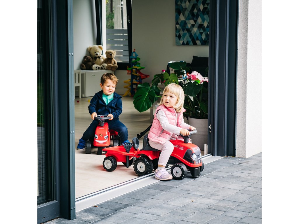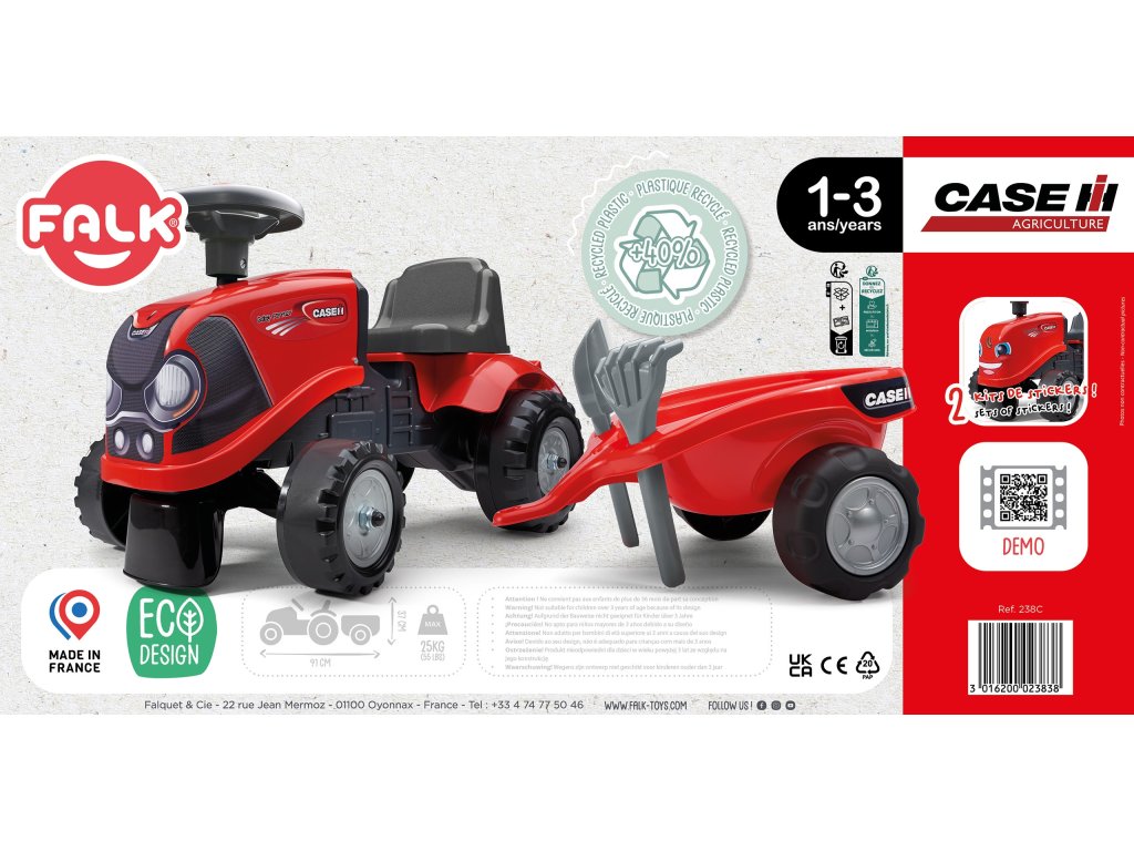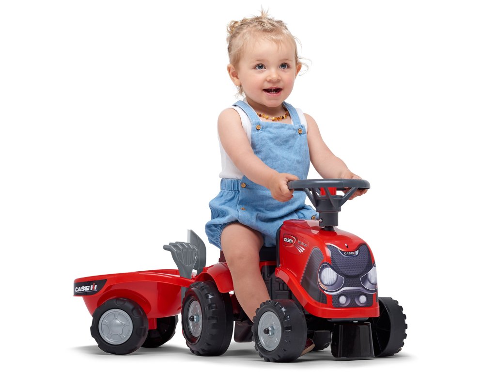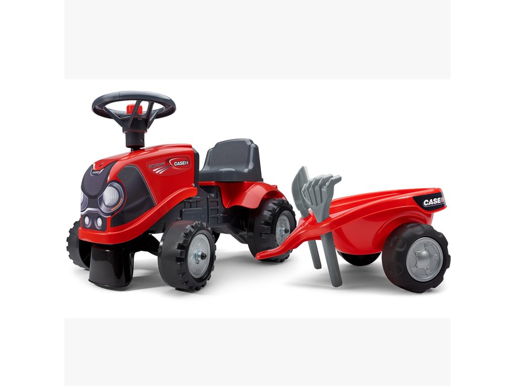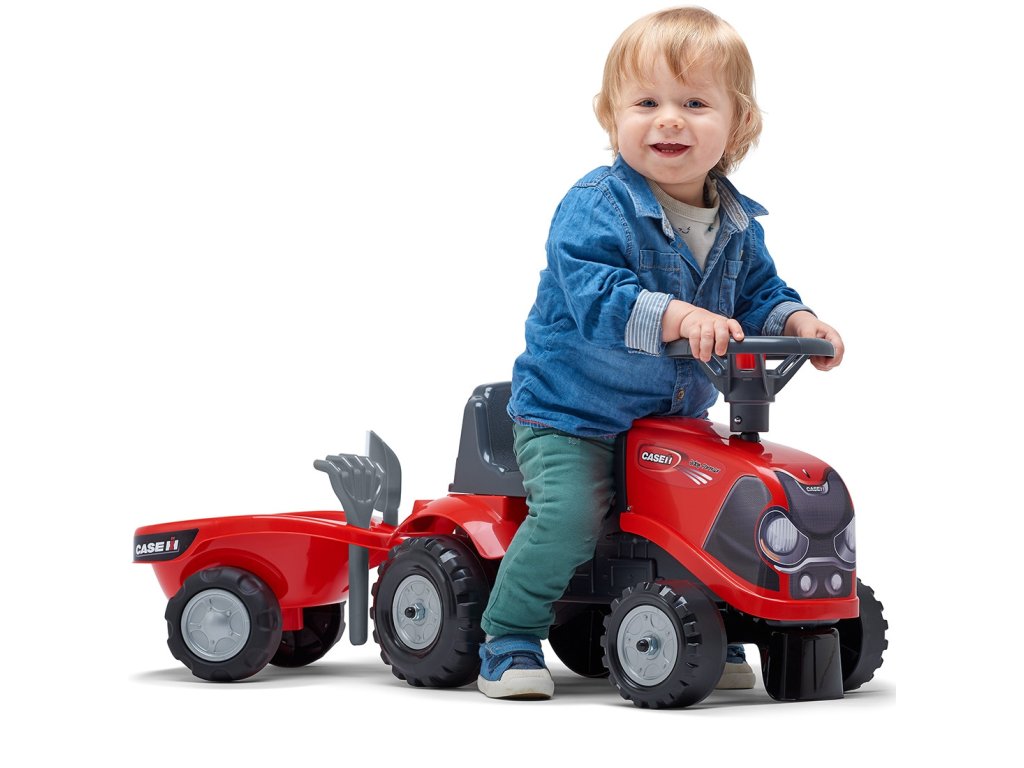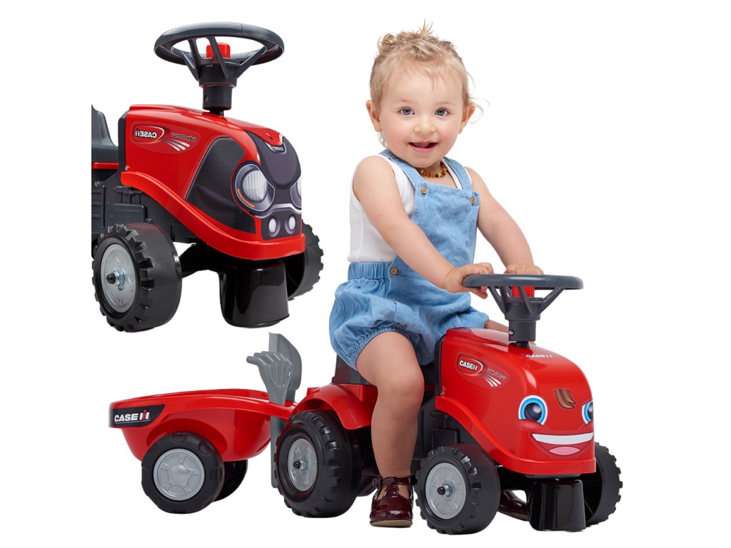 Detský traktor CASE IH s prívesom značkyFALK je pre mnohých splneným snomvodič malého traktora. Starostlivo vytvorené, zpozornosť k najmenším detailom! Nieskutočný farmár by takýmto vozidlom nepohrdol. Vozidlo je vyrobené zmateriály najvyššej kvality určenépre deti vo veku 12 mesiacov a viac. Vozidlo je vybavenéodnímateľný príves s panelmi avolant s klaksónom.Kolesá traktor boli vyrobenévyrobené z vysokokvalitného plastu. Okrem traktora sa musíme hrať shrable a lopaty pre našich najmenších. Nálepky, ktoré sú súčasťou traktora, umožnia vášmu dieťaťu vybrať si vlastný jedinečný štýl. Smajlík alebo štandardná nálepka? Prekvapte všetkých a nalepte nálepku na prednú časť vozidla.