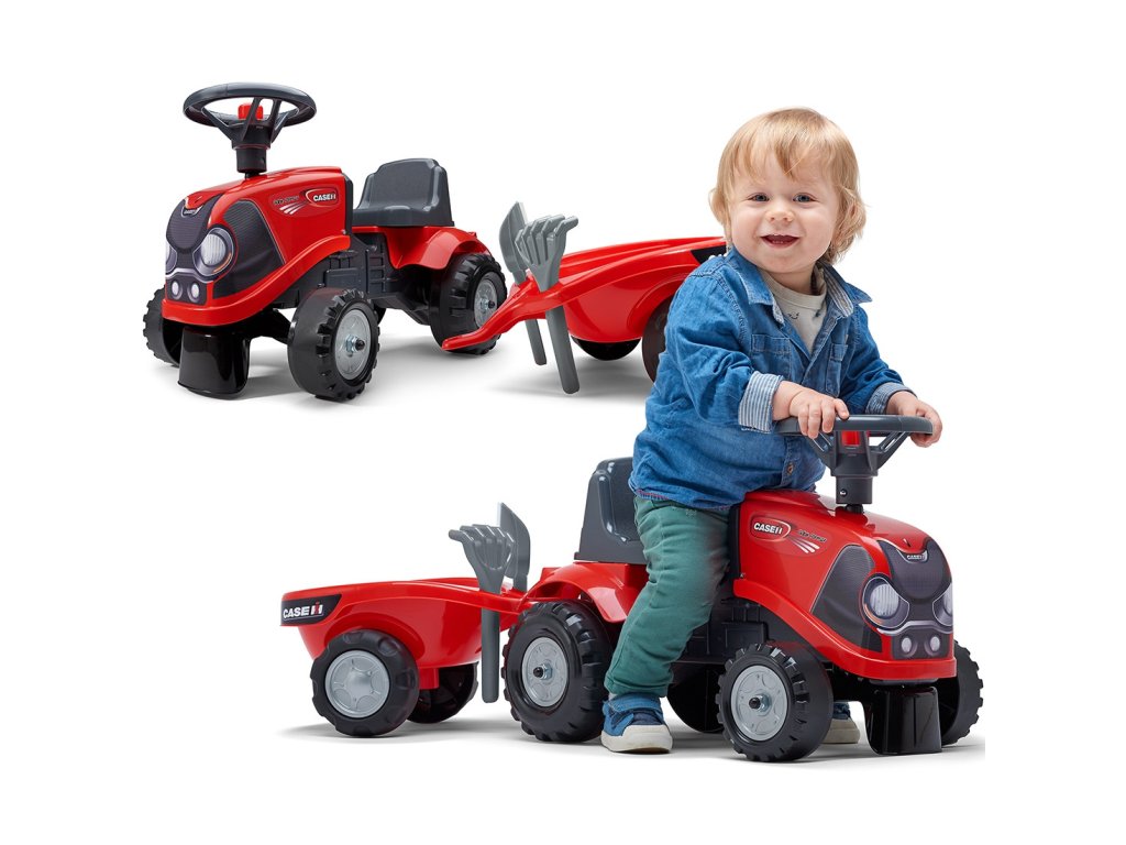 FALK Detský traktor Case IH Ride-On Red s prívesom + príslušenstvo od 12 mesiacov