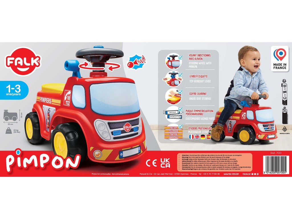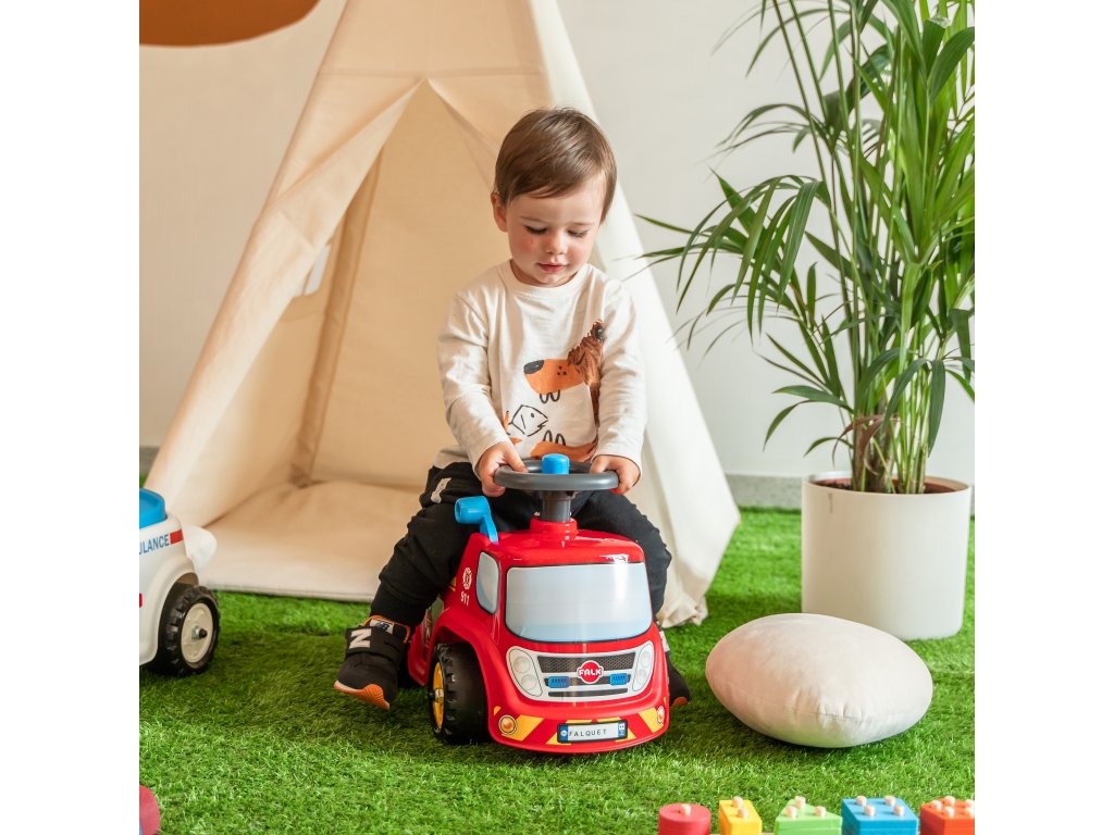 Hasičské auto Hasič značkyFALK je detské autíčko, ktoré poteší vaše dieťa. Vďaka riadidlám s klaksónom bude môcť vaše dieťatko ľahko manévrovať a zároveň rozvíjať svoje motorické schopnosti Toto detské odrážadlo obsahuje praktický úložný priestor umiestnený pod sedadlom. Má tiež tabuľku s číslom, na ktorej môžete jazdu pomenovať!
