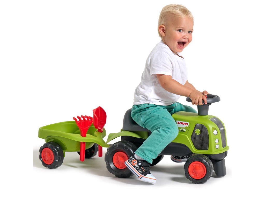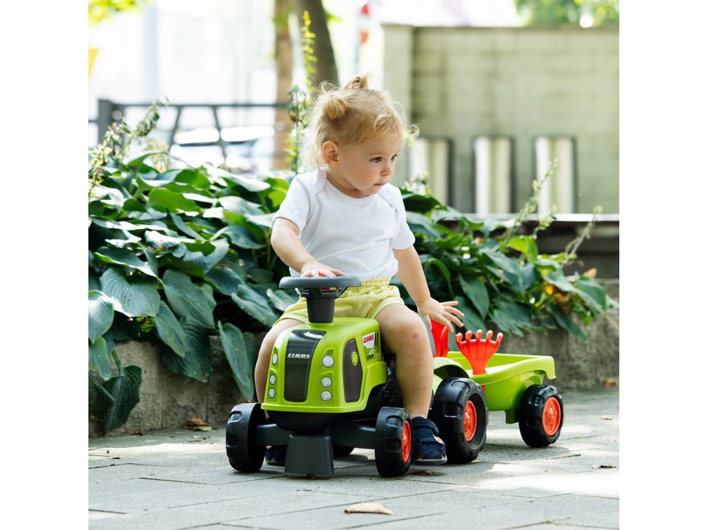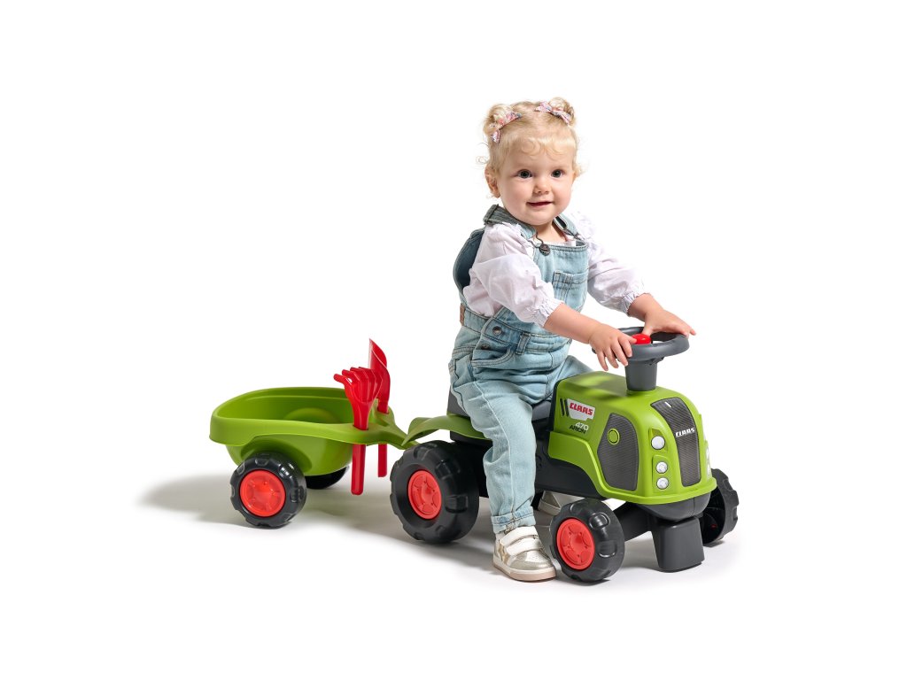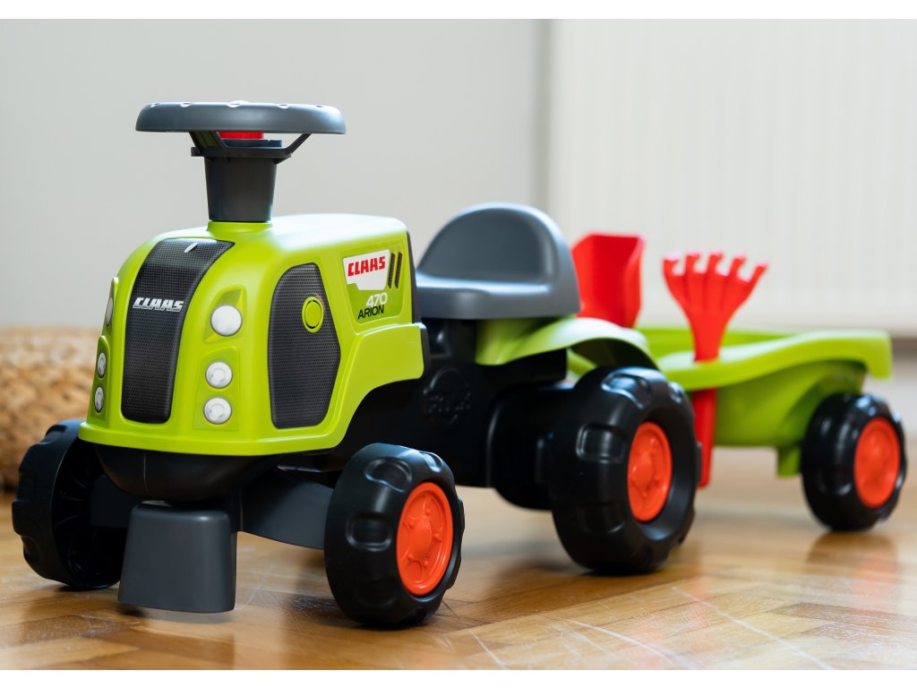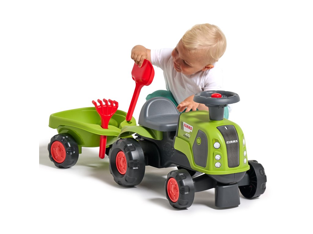 FALK Jazda na koni Claas 470 Arion Green s prívesom + piesková súprava