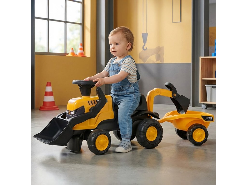 Očarujúcetraktor JCB s pojazdom je dokonalý kamarát na hranie pre vaše dieťa, určený pre batoľatá, ktoré robia prvé kroky do sveta motorizmu. Toto jedinečné vozidlo je nielen estetické, ale predovšetkýmekologické - vyrobené vFrancúzsko s použitím aspoň90 % recyklovaného plastu. Jazdiaci traktor je licencovanou verziou modelu Claas Arion 470 od spoločnosti JCB, ktorý je navrhnutý tak, aby odolal hravosti aj tých najodvážnejších detí. Vďaka špeciálnej konštrukcii kolies pokrytýchelastomar, vozidlo je v pohybeúplne tichý, čo vám umožní hrať v interiéri bez hluku a zároveň zabezpečí bezpečné uchopenie. Volant je vybavenýrohčo zvyšuje rozmanitosť jazdy a priložené príslušenstvo zaručuje hodiny zábavy na záhrade alebo pieskovisku.