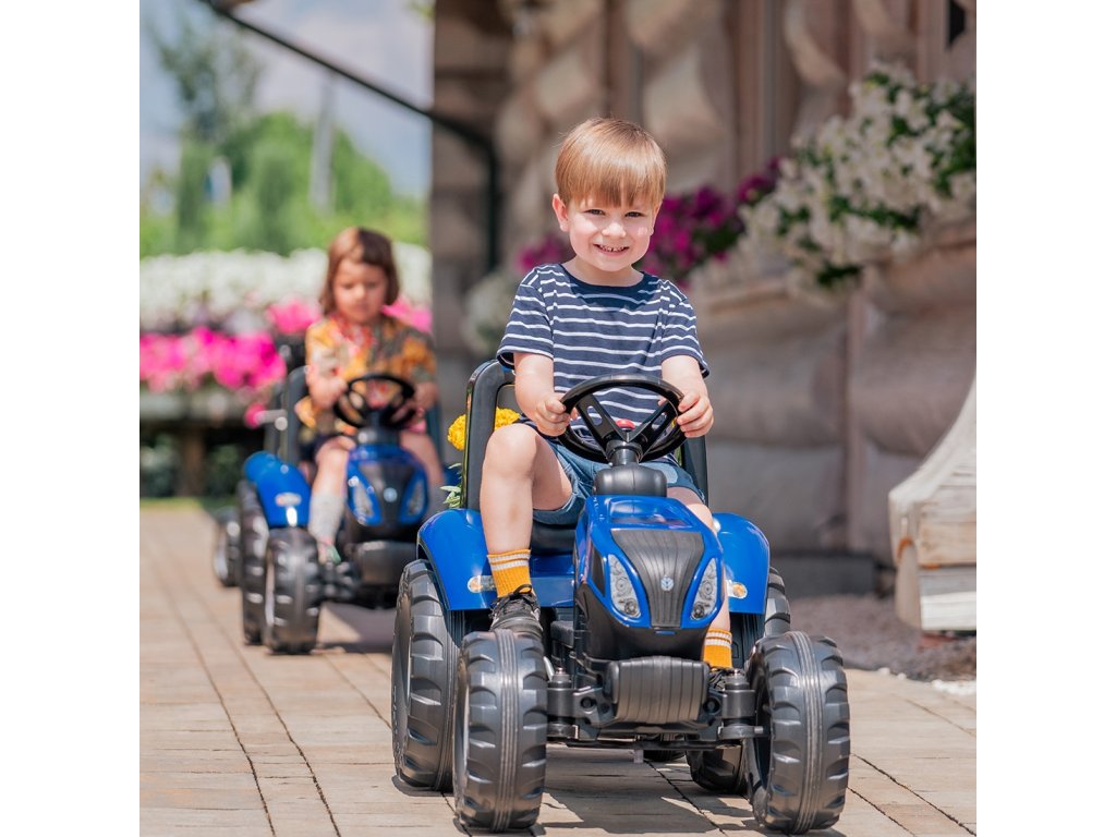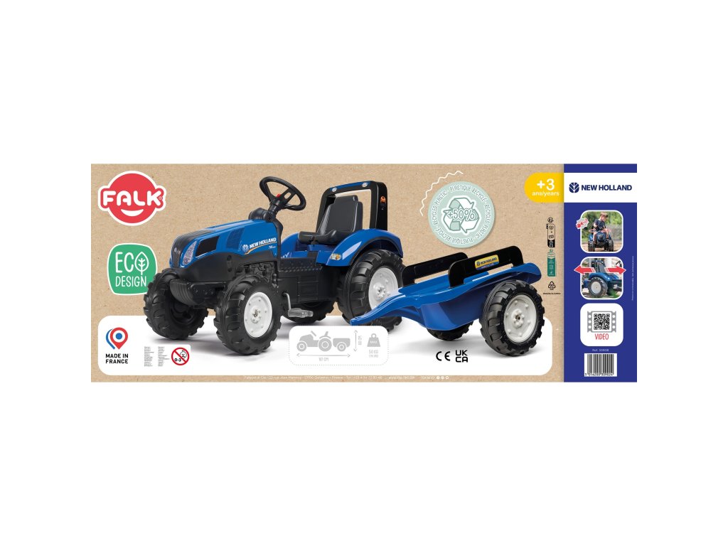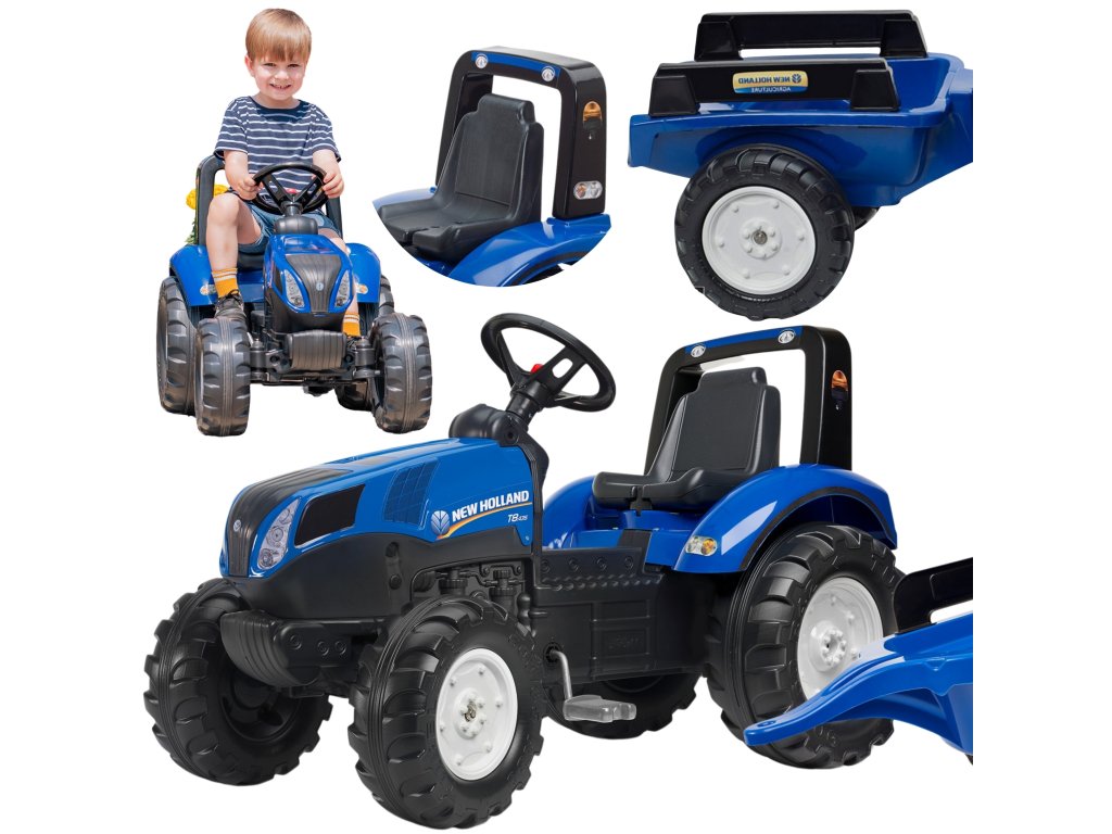 Šliapací traktor New Holland s prívesom výrobcaFALK je pre mnohých splneným snomobsluha malého traktora.Starostlivo spracované, s dôrazom na najmenší detail! Nie Farmárby takýmto vozidlom nepohrdol. Vozidlo je vyrobené zplasty najvyššej kvality. Určené pre deti starnutie na 3 roky. Vozidlo je vybavenéodnímateľný príves s panelmi avolant s klaksónom. Kolesá traktora sú vyrobené zvysokokvalitný plast.