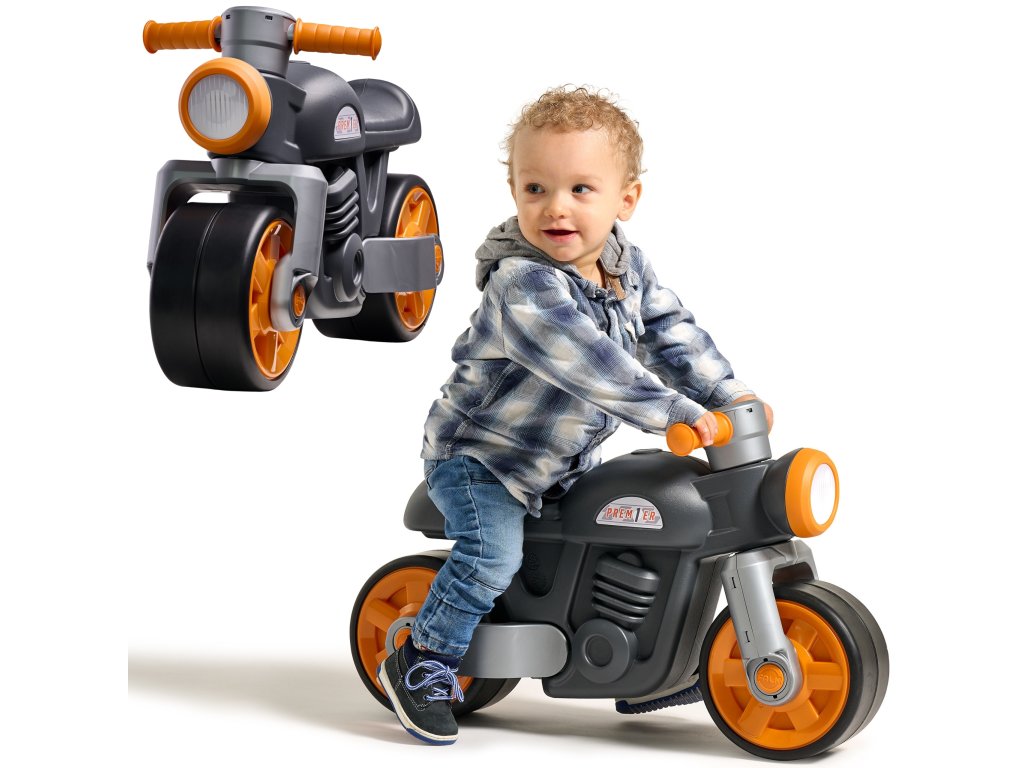 Nová verzia pôvabného terénny motocykel Falk. Vybavený veľkými kolesami poskytovanie potrebnéstabilitu a elastomérový povlak motocykla ho robí viacodolné voči poškriabaniu alebo inému poškodeniu. Ideálne na použitie v interiéri aj exteriéri