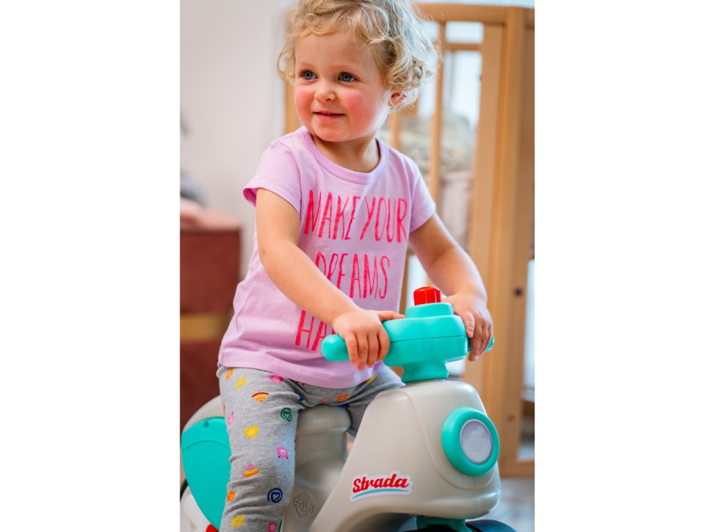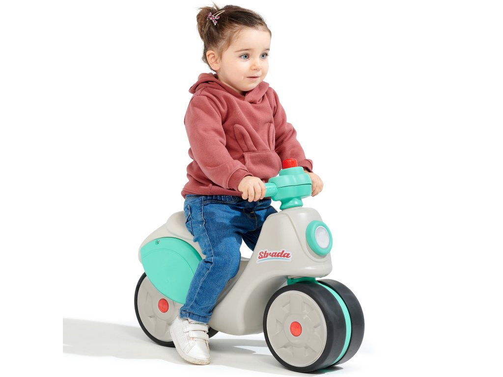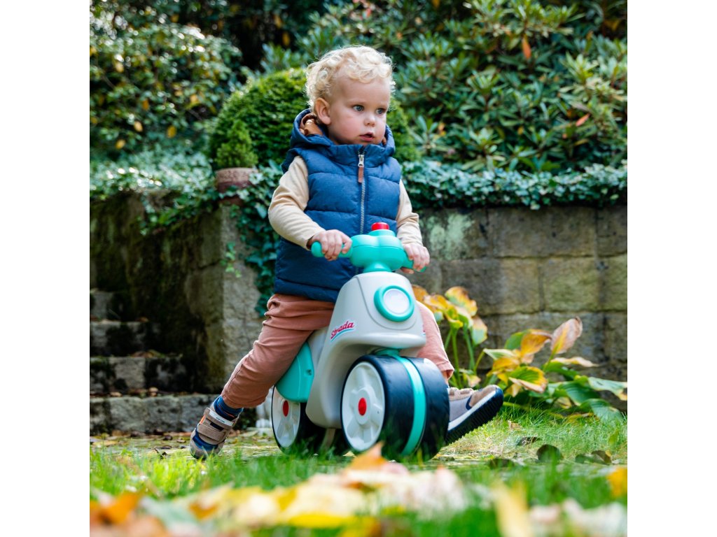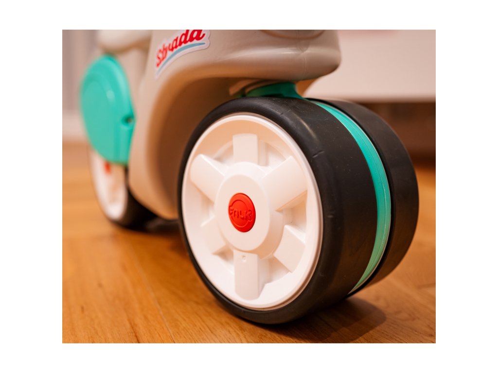 S týmtojazdec v štýleRetro, Falk sa pozrie na jej históriu a aktualizuje jeden z jejvlajkové hračky 70. rokov. Nová verzia dokonale zapadá do súčasnej doby vďaka svojim módnym farbám a dizajnu. Vybavenáveľké kolesá poskytovanie potrebnéstabilita rozvíjať, navyše vaše dieťacvičenia rovnováhy imotorické zručnosti. Ichelastomérový povlak ich robíodolnejšie proti poškriabaniu alebo inému poškodeniu. Kolobežka sa ovláda ako skutočná kolobežka vďakatorzný volant, ktorá je malá a obsahuje klaksón, ktorý ešte viac obohatí detskú hru.
