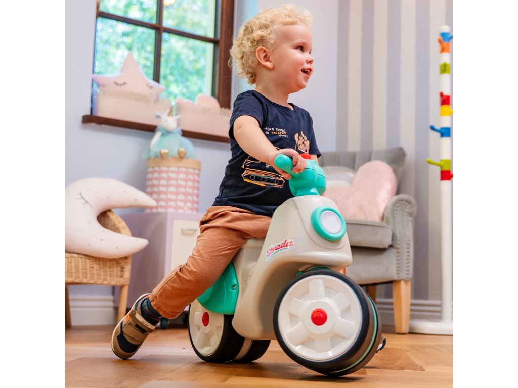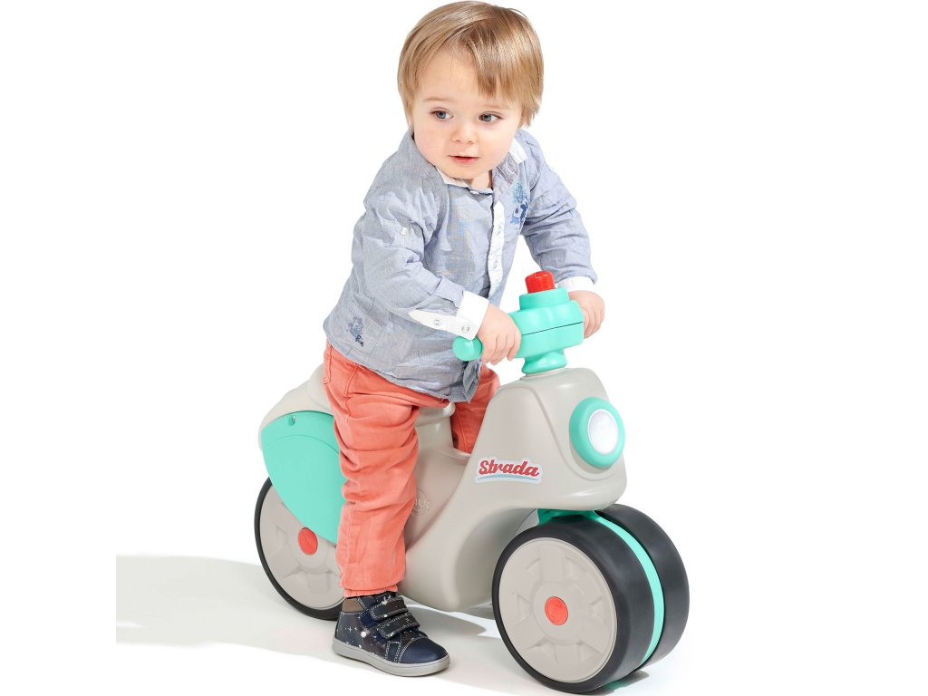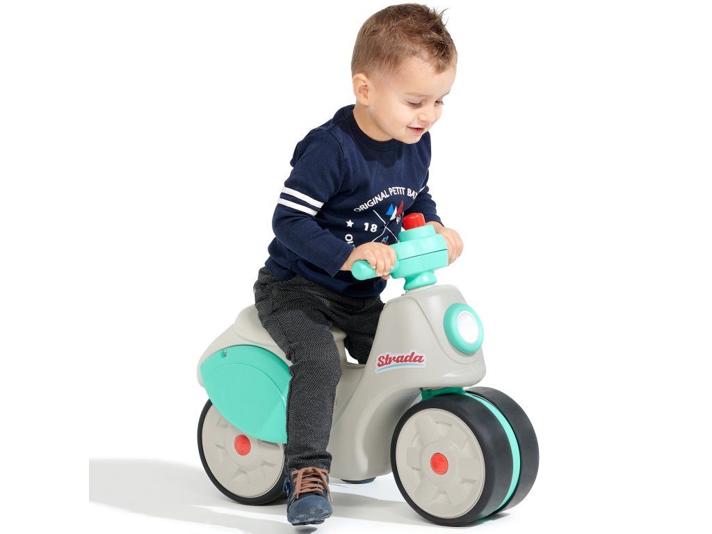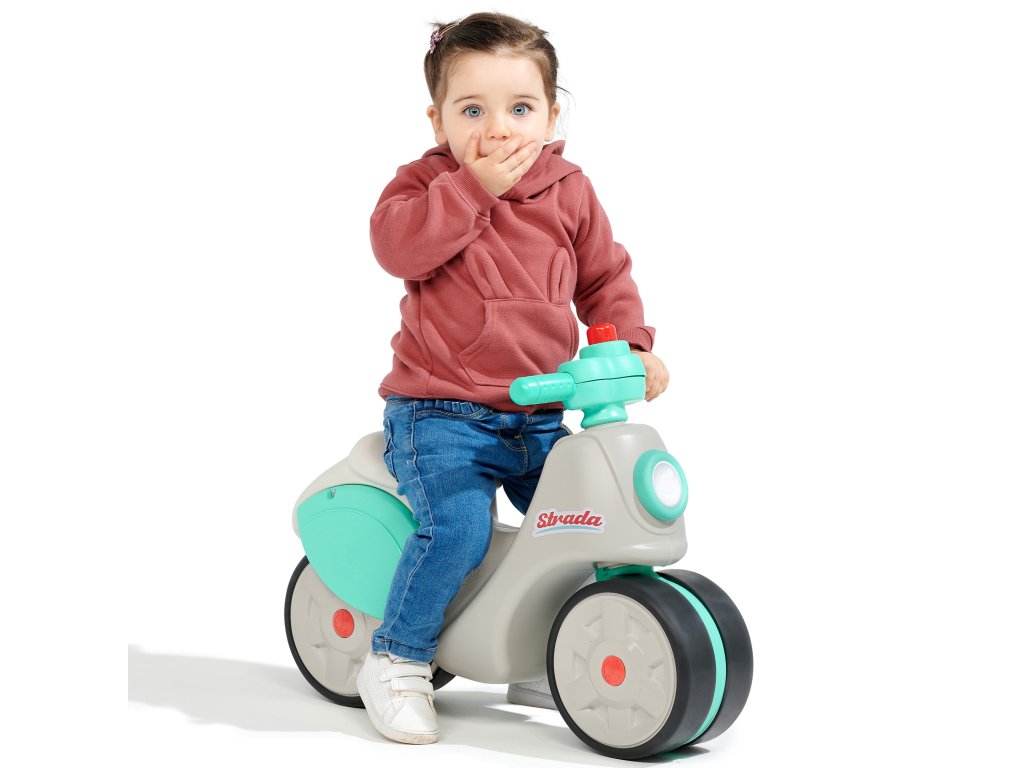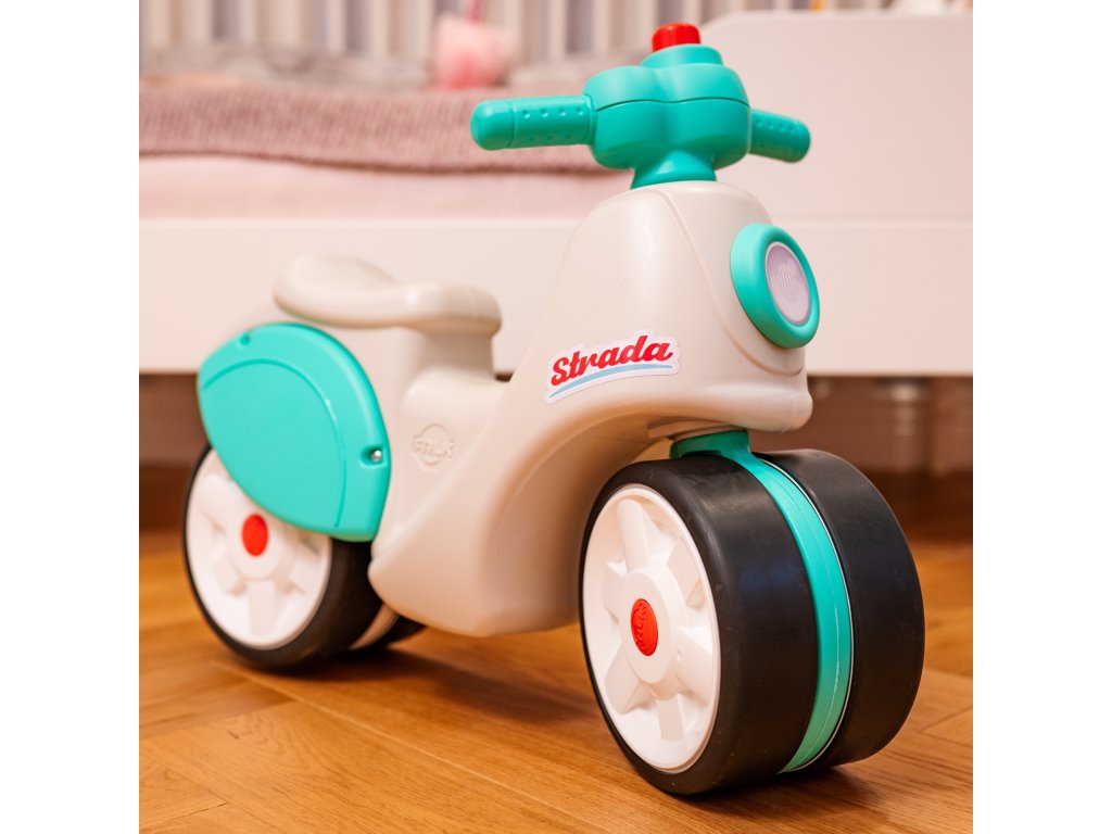 S týmtojazdec v štýleRetro, Falk sa pozrie na jej históriu a aktualizuje jeden z jejvlajkové hračky 70. rokov. Nová verzia dokonale zapadá do súčasnej doby vďaka svojim módnym farbám a dizajnu. Vybavenáveľké kolesá poskytovanie potrebnéstabilita rozvíjať, navyše vaše dieťacvičenia rovnováhy imotorické zručnosti. Ichelastomérový povlak ich robíodolnejšie proti poškriabaniu alebo inému poškodeniu. Kolobežka sa ovláda ako skutočná kolobežka vďakatorzný volant, ktorá je malá a obsahuje klaksón, ktorý ešte viac obohatí detskú hru.