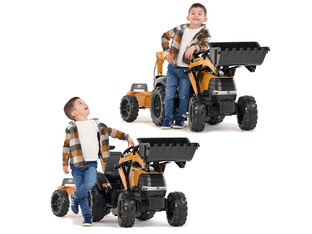 Pedálový traktor Case CE od renomovaného výrobcuFalk je snom každého malého staviteľa. Toto pôsobivé vozidlo je vernou kópiou skutočného traktoraKonštrukcia prípaduurčený špeciálne pre deti vo veku od 3 do 7 rokov. Vďaka robustnej konštrukcii a zmyslu pre detail bude traktor vhodný na akúkoľvek hru, či už na záhrade, dvore alebo na ihrisku. Výrobok patrí kEkologický dizajn a bol 100% vyrobený vo Francúzsku s použitím minimálne 60% recyklovaného plastu, čo z neho robí ekologickú voľbu. Vozidlo ponúka veľa možností na hranie vďaka svojej bohatej výbave. Máplne funkčný predný nakladač azadné rýpadloktoré sú kĺbové a umožňujú dieťaťu realisticky kopať a premiestňovať piesok, zeminu alebo listy. Jedinečnou funkciou jeotočné sedadlo (360°), ktorý umožňuje malému operátorovi pohodlne obsluhovať prednú lyžicu aj zadné rýpadlo bez toho, aby musel vystúpiť z vozidla. Súprava obsahuje ajodnímateľný príves s bočnými panelmiideálny na prepravu nálezov. Pohodlie pri jazde zabezpečuje volant vybavenýroha stabilné kolesá zaručujú bezpečnú jazdu.