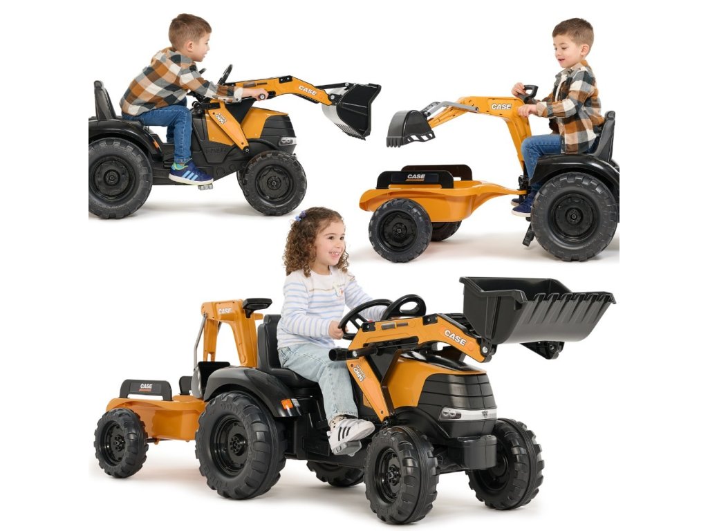 FALK Šliapací traktor Case CE s rýpadlom, nakladačom a prívesom 3-7 rokov