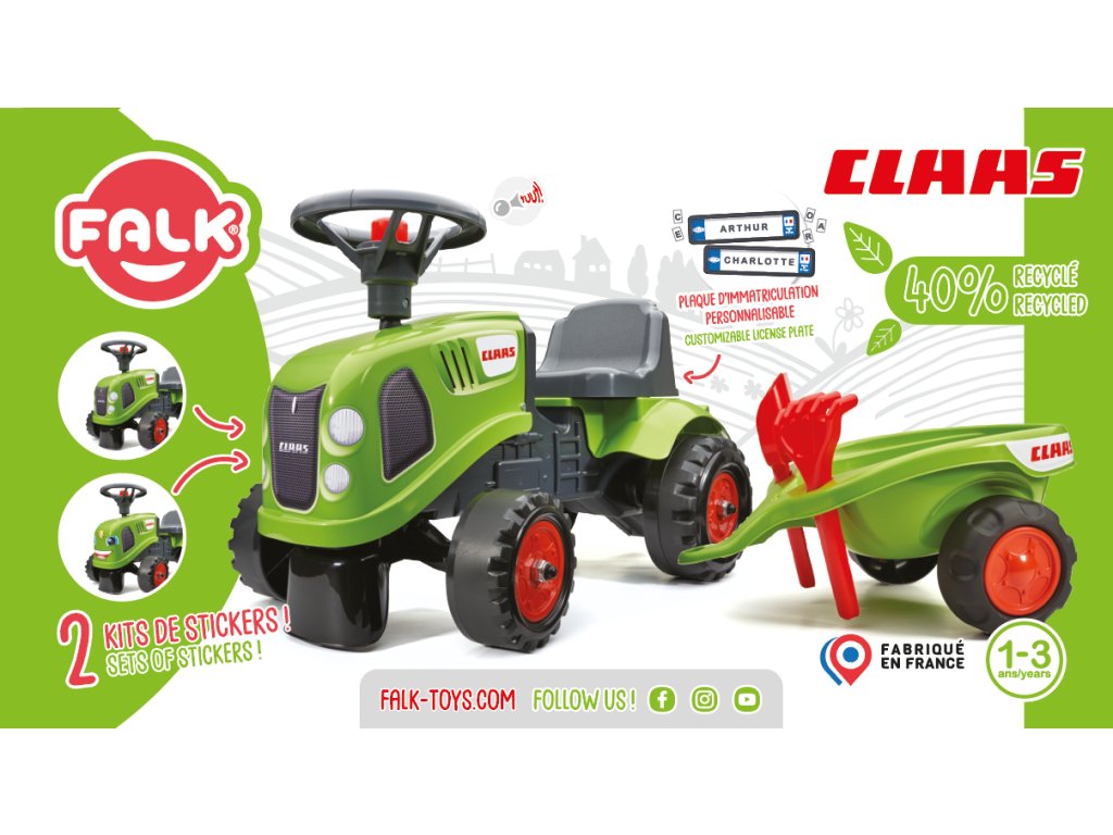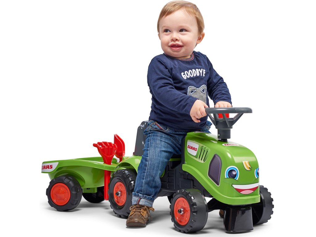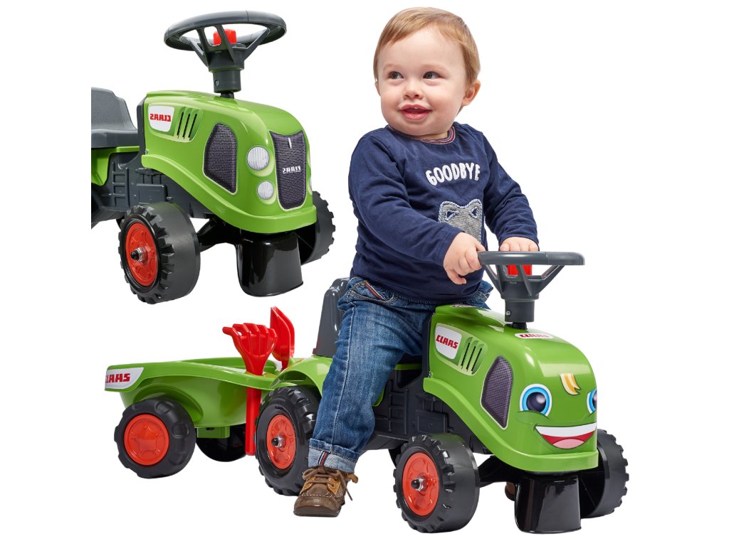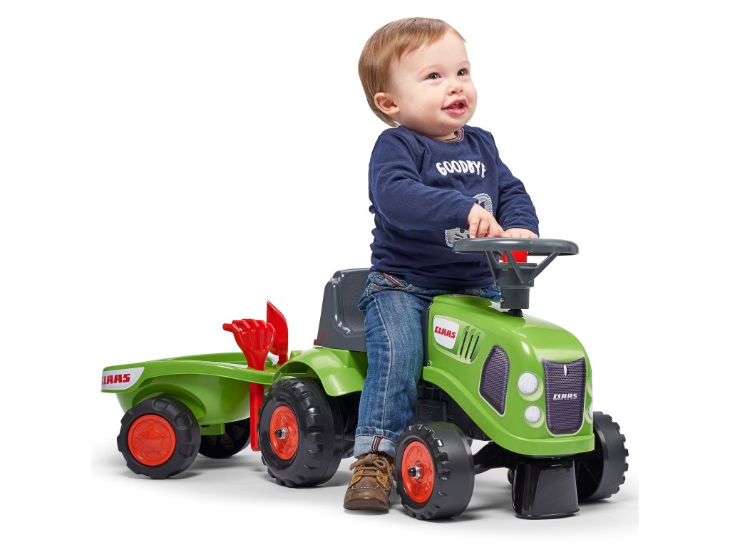 FALK Traktor Baby Claas zelený s prívesom + príslušenstvo od 1 roka