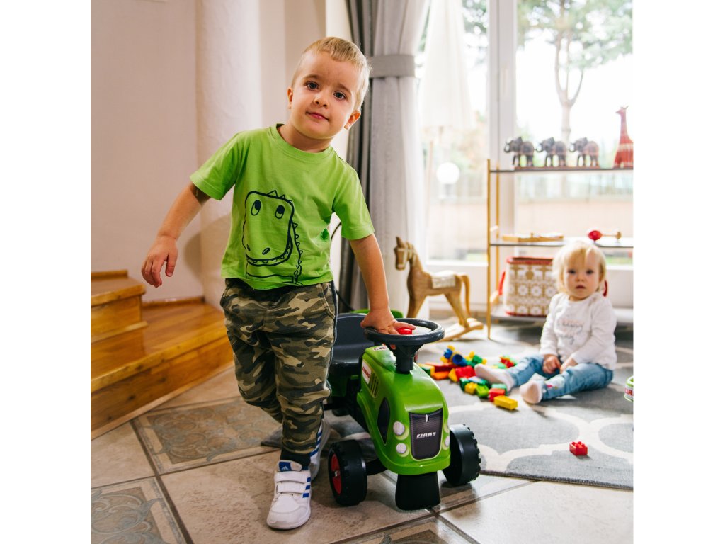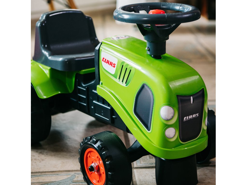 Detský traktor Claas s prívesom značky Falk je pre mnohých splneným snomvodič malého traktora. Starostlivo vytvorené, zpozornosť k najmenším detailom! Nieskutočný farmár by takýmto vozidlom nepohrdol. Vozidlo je vyrobené zmateriály najvyššej kvality určenépre deti vo veku 12 mesiacov a viac. Vozidlo je vybavenéodnímateľný príves s panelmi avolant s klaksónom.Kolesá traktor boli vyrobenévyrobené z vysokokvalitného plastu. Okrem traktora sa musíme hrať shrable a lopaty pre našich najmenších. Nálepky, ktoré sú súčasťou traktora, umožnia vášmu dieťaťu vybrať si vlastný jedinečný štýl. Smajlík alebo štandardná nálepka? Prekvapte všetkých a nalepte nálepku na prednú časť vozidla.