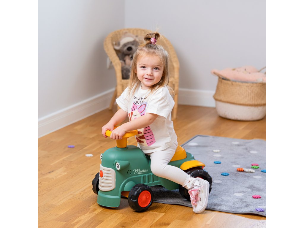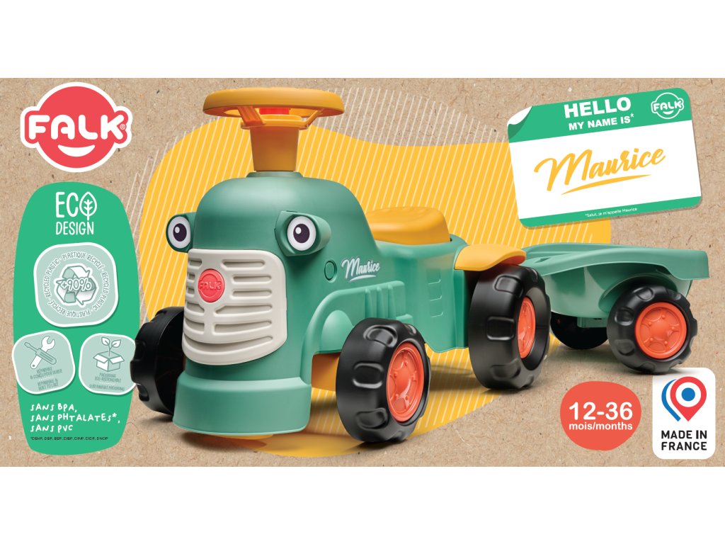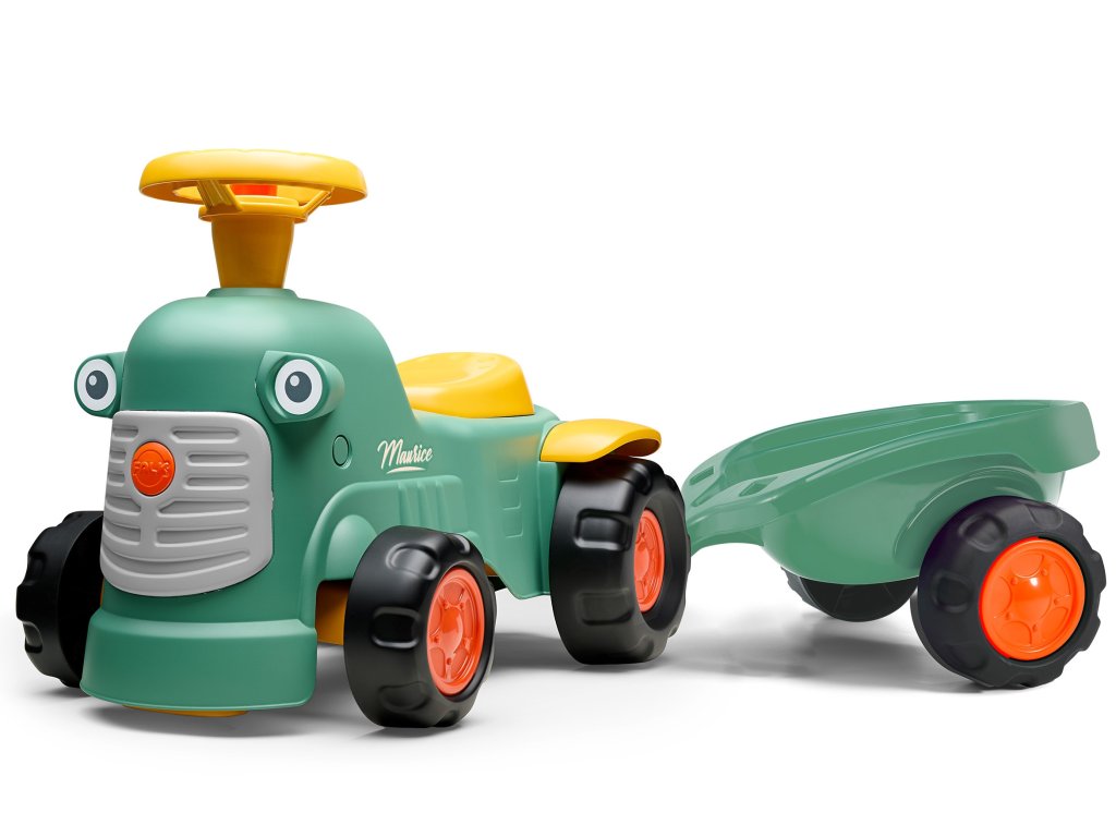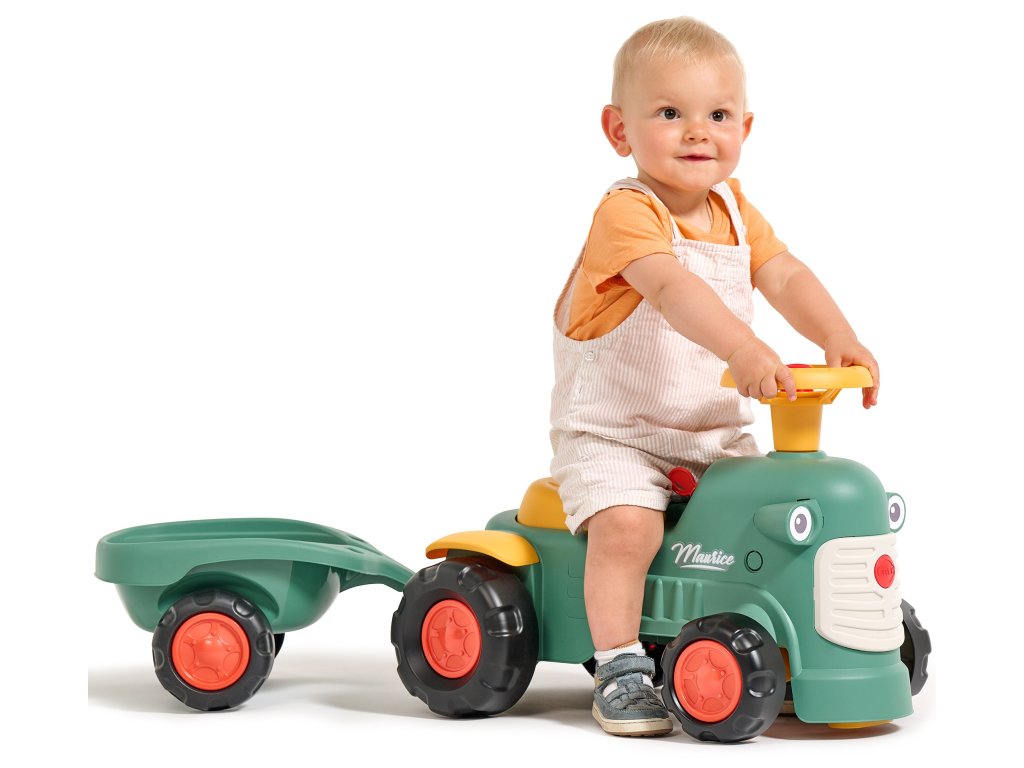 Traktor Rider Baby Maurice Vintage s prívesom značky Falk je pre mnohých splneným snomvodič malého traktora. Starostlivo vytvorené, zpozornosť k najmenším detailom! Nieskutočný farmár by takýmto vozidlom nepohrdol. Vozidlo je vyrobené zmateriály najvyššej kvality určenépre deti vo veku 12 mesiacov a viac. Vozidlo je vybavenéodnímateľný príves s panelmi avolant s klaksónom.Kolesá traktor boli vyrobenévyrobené z vysokokvalitného plastu.