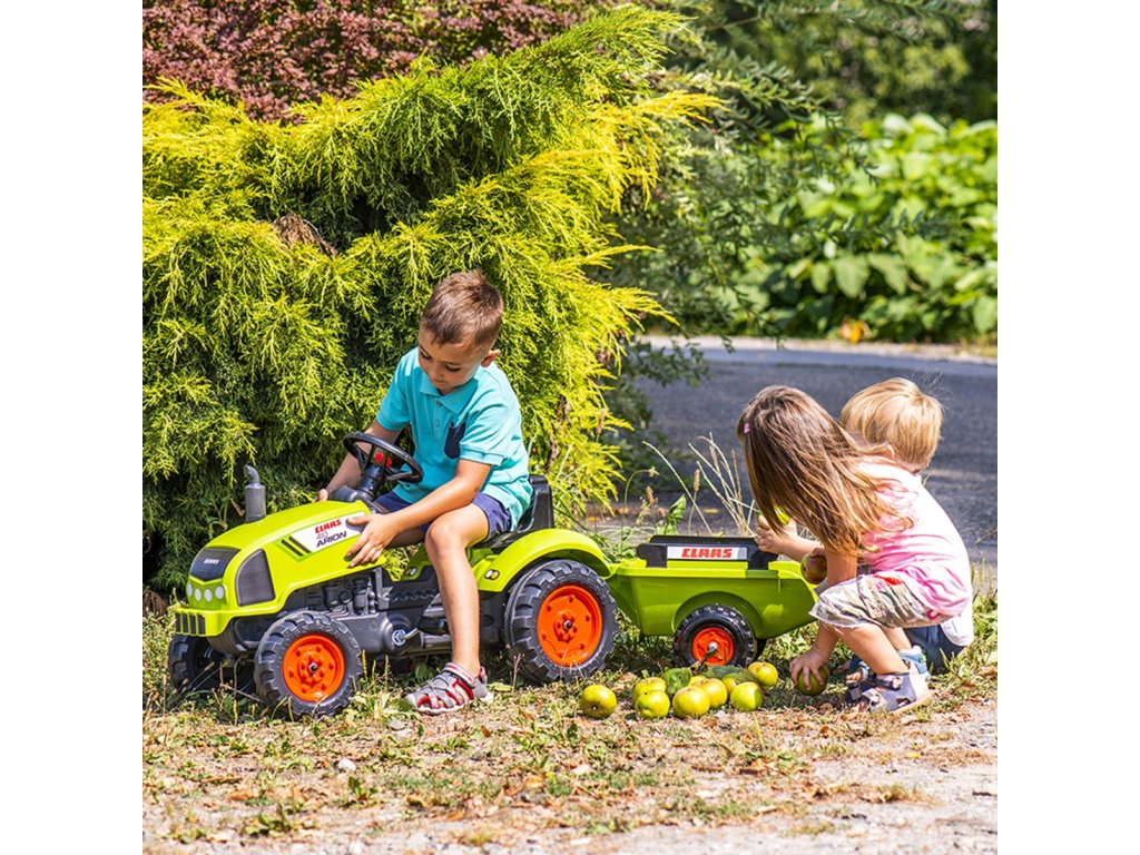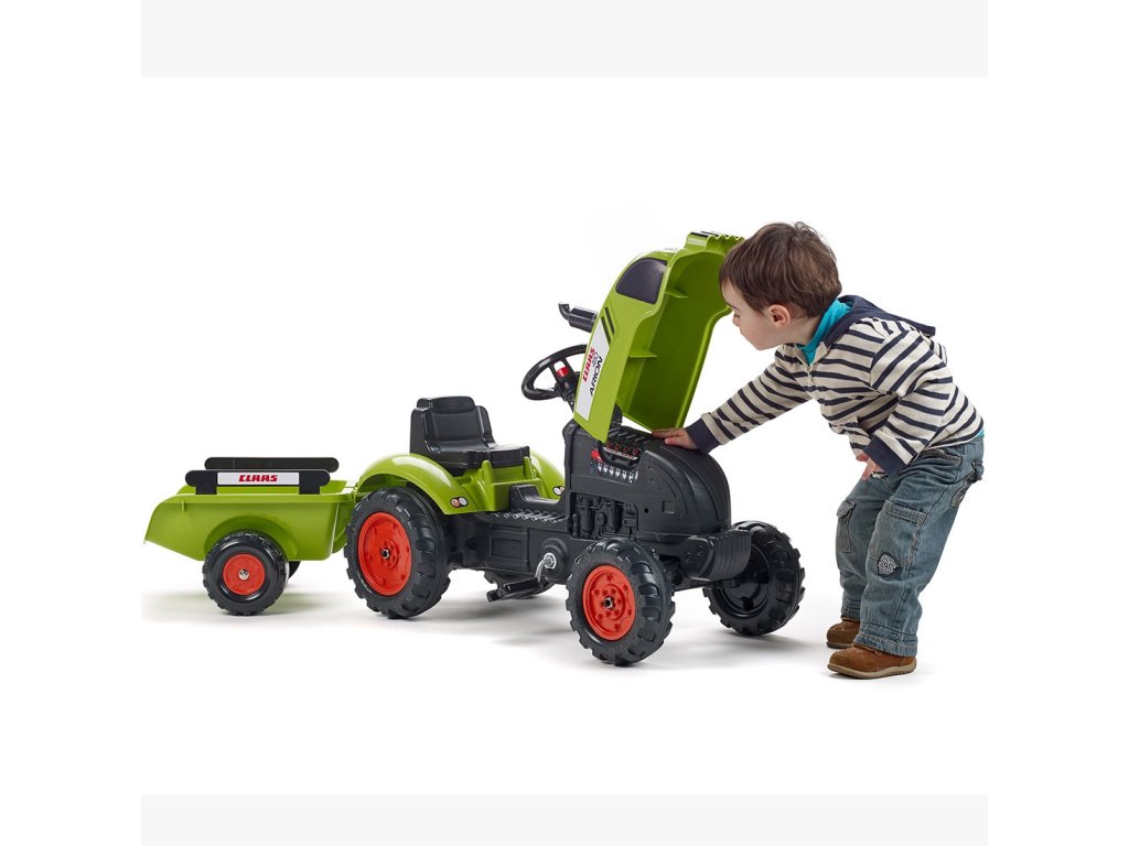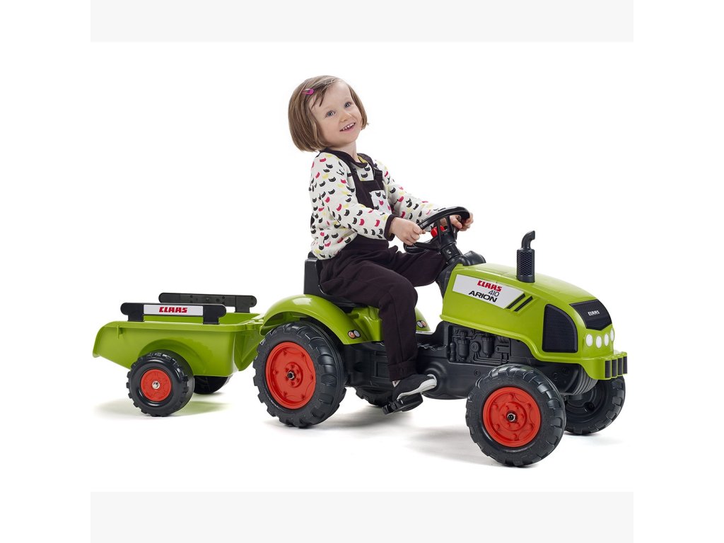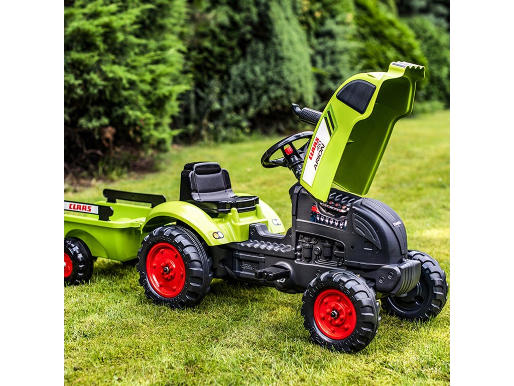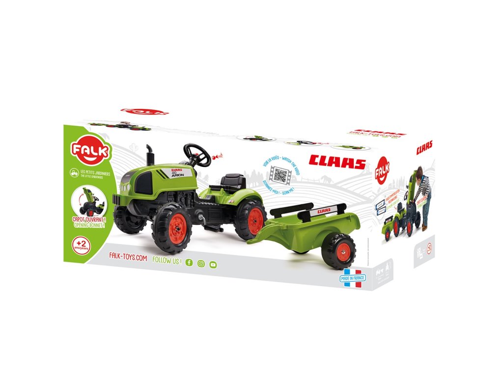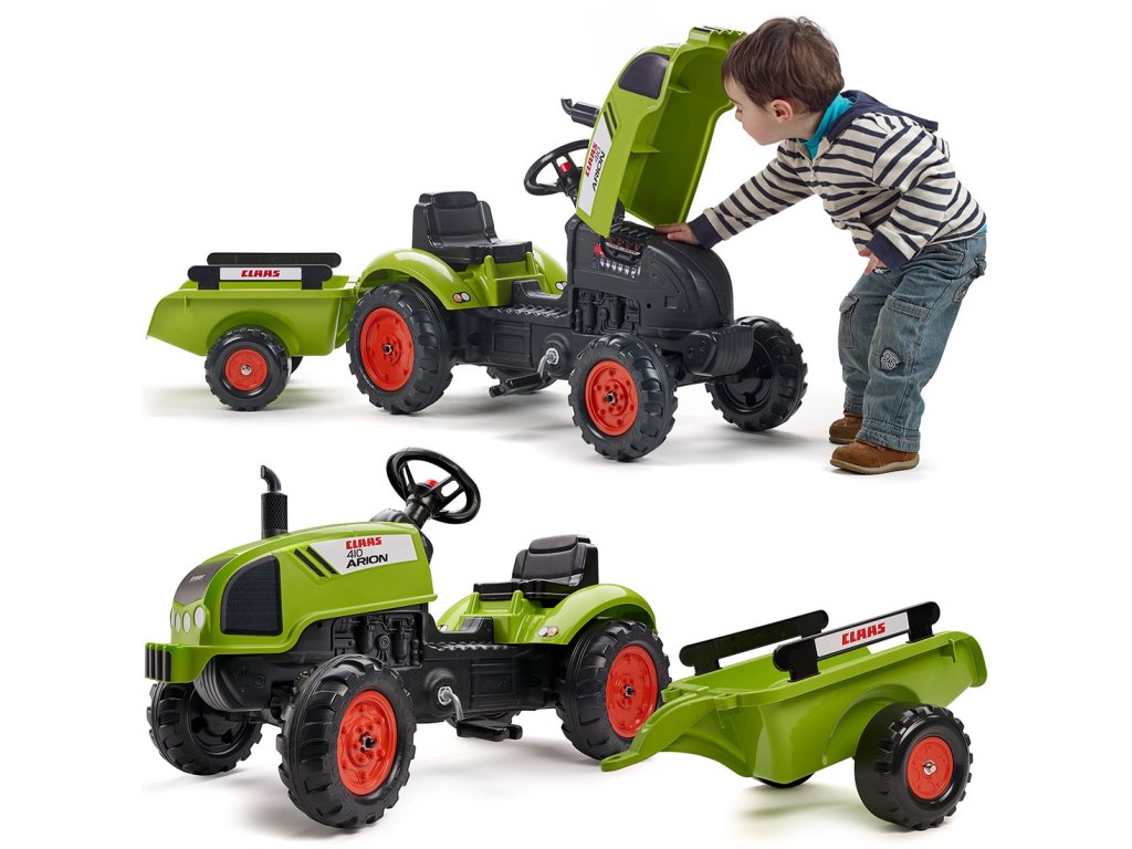 Pedálový traktorClaas Arion 410 je jedinečné vozidlo značkyFalkšpeciálne navrhnuté pre mladých záhradkárov2 až 5 rokov. Je to verná replika skutočného modelu Claas, ktorá zaujme svojím zmyslom pre detail a funkčnosť. Hračka bola navrhnutá s ohľadom na ekológiu - patrí do raduEkologický dizajn a bol vyrobený v100% vo Francúzskus použitím aspoň75 % recyklovaného plastu. Výber tohto traktora je tak nielen zárukou skvelej zábavy, ale aj starostlivosti o životné prostredie. Vozidlo je vybavenéodnímateľný príves s bočnicami, ktoré umožňujú prepravu piesku, lístia, zeminy alebo kameňov z jedného konca záhrady na druhý. Veľkým lákadlom pre malých kutilov budeotváranie kapotymotor sa dá skontrolovať a môžete sa zahrať na mechanika. Pohodlie pri jazdetorzný volant s klaksónomktorá umožňuje dieťaťu ľahko manévrovať s vozidlom a upozorniť ostatných hráčov.