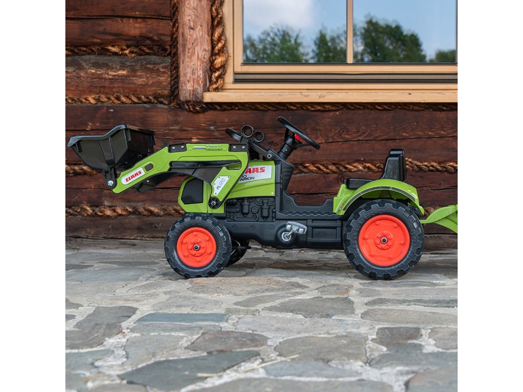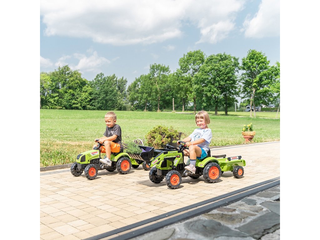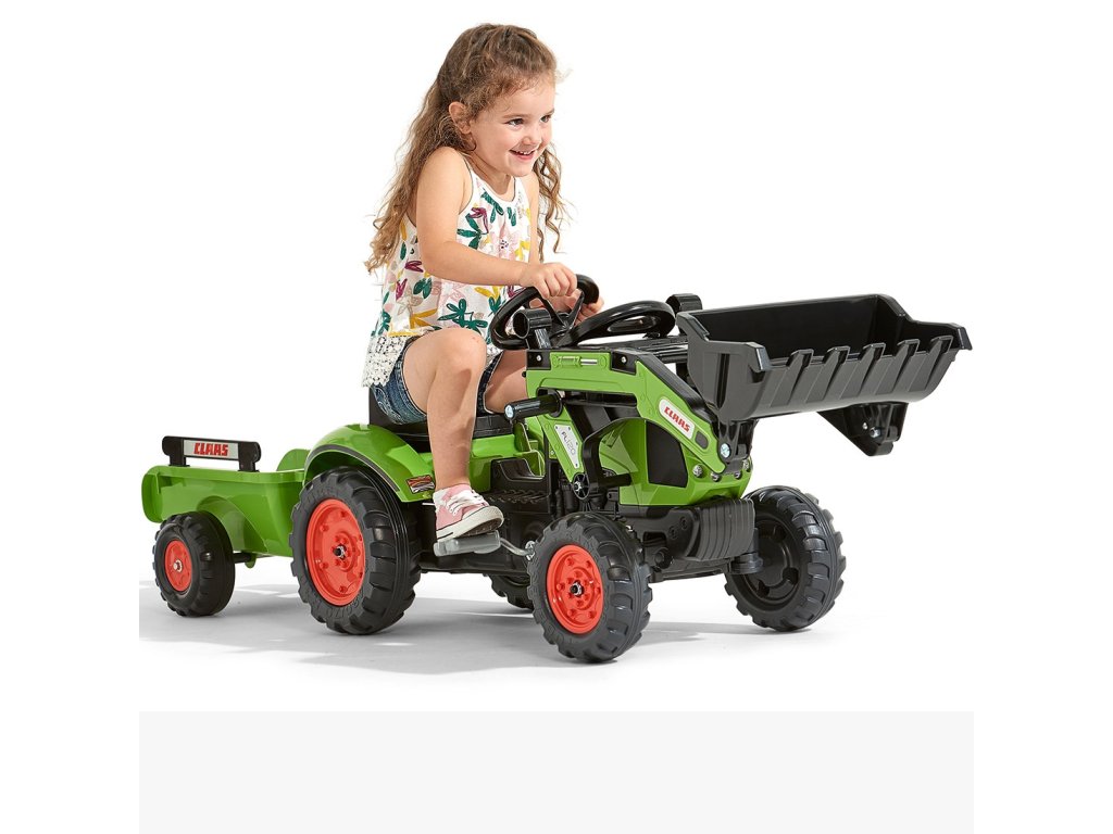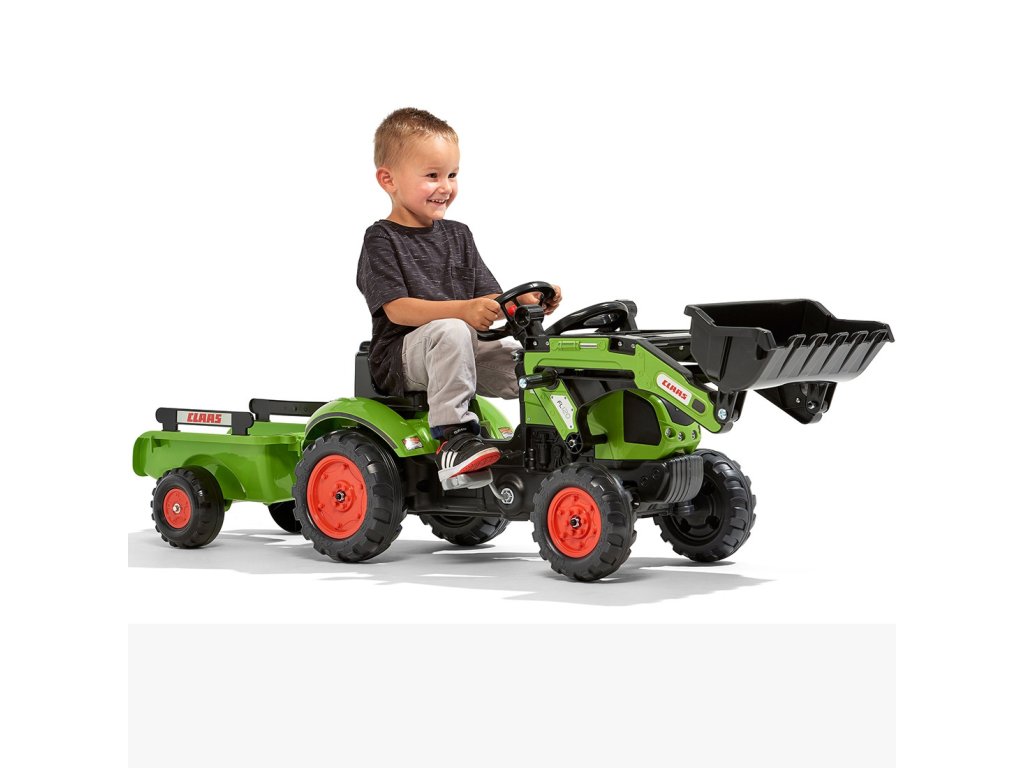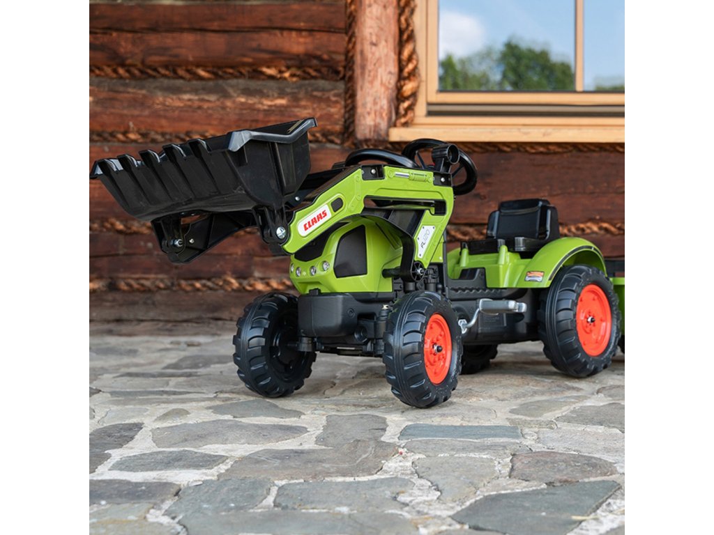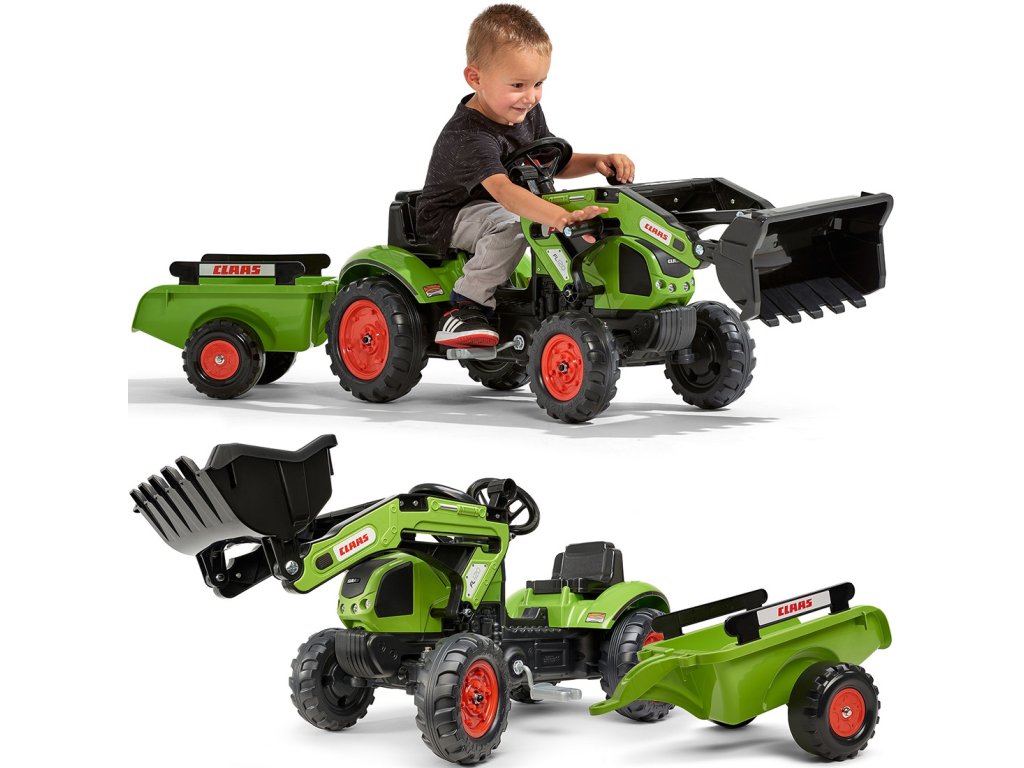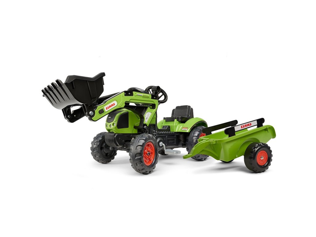 FALK Traktor Claas zelený s prívesom a pedálovou lyžicou od 2-5 rokov